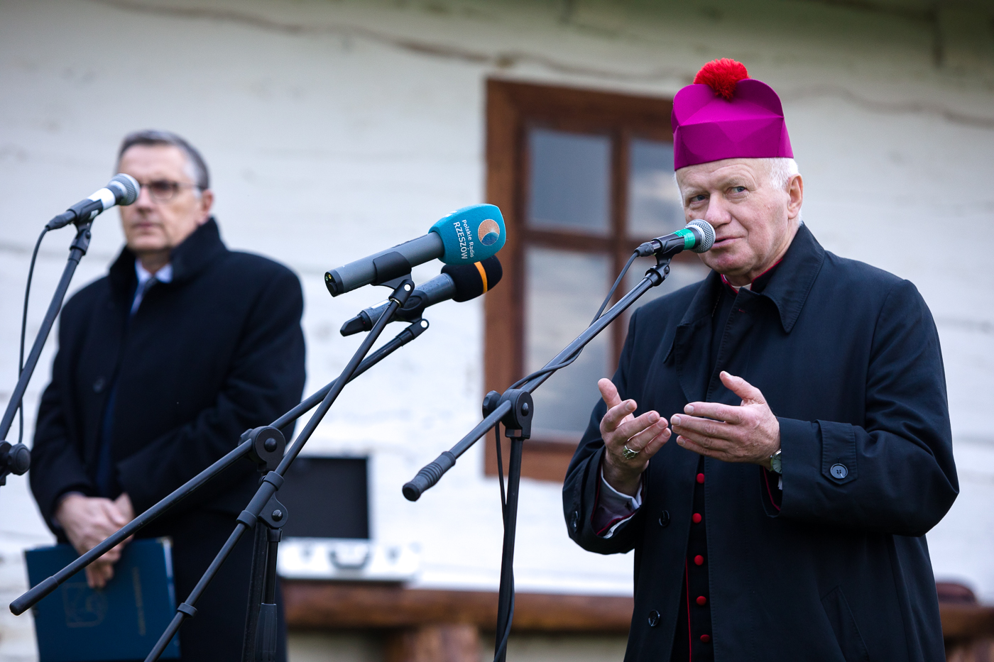 „Zaduszki Skansenowskie” w Markowej upamiętniające Rodzinę Ulmów. Na zdj. Marszałek Województwa Podkarpackiego Władysław Ortyl – 4 listopada 2023. Fot. Sławek Kasper (IPN)