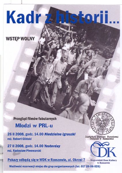 W dniach 26–27 lutego 2008 r. w Wojewódzkim Domu Kultury w Rzeszowie, przy ulicy Okrzei 7, odbył się przegląd filmów fabularnych „Młodzi w PRL-u”. W ramach przeglądu zaprezentowane zostały filmy:
