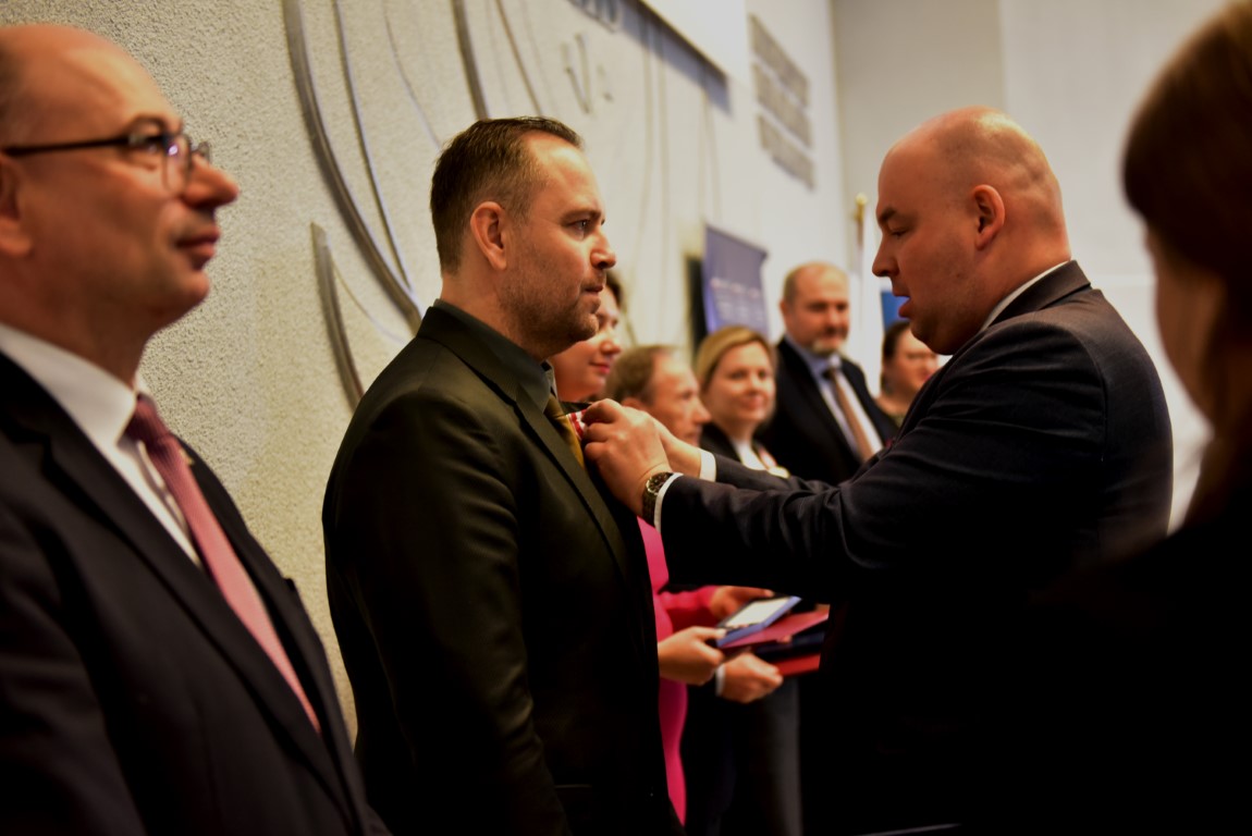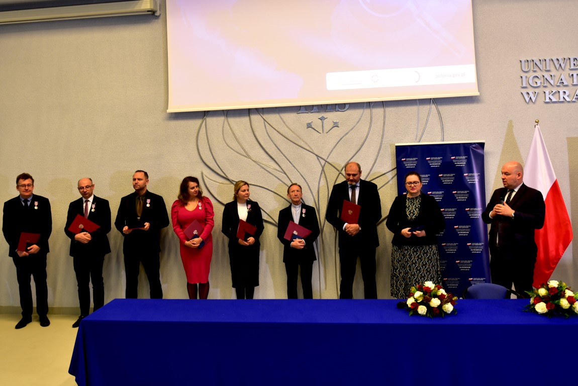 Po odebraniu nagrody z rąk ministra Jana Dziedziczaka, dr Karol Nawrocki zabrał głos w imieniu odznaczonych: