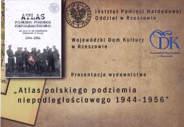 29 lutego 2008 r. w Wojewódzkim Domu Kultury w Rzeszowie, ul. Okrzei 7, miało miejsce spotkanie poświęcone prezentacji wydawnictwa „Atlas polskiego podziemia niepodległościowego 1944–1956”, której towarzyszyła premiera filmu dokumentalnego, okolicznościowy wykład otwarty oraz wystawa poświęcona żołnierzom podziemia niepodległościowego.