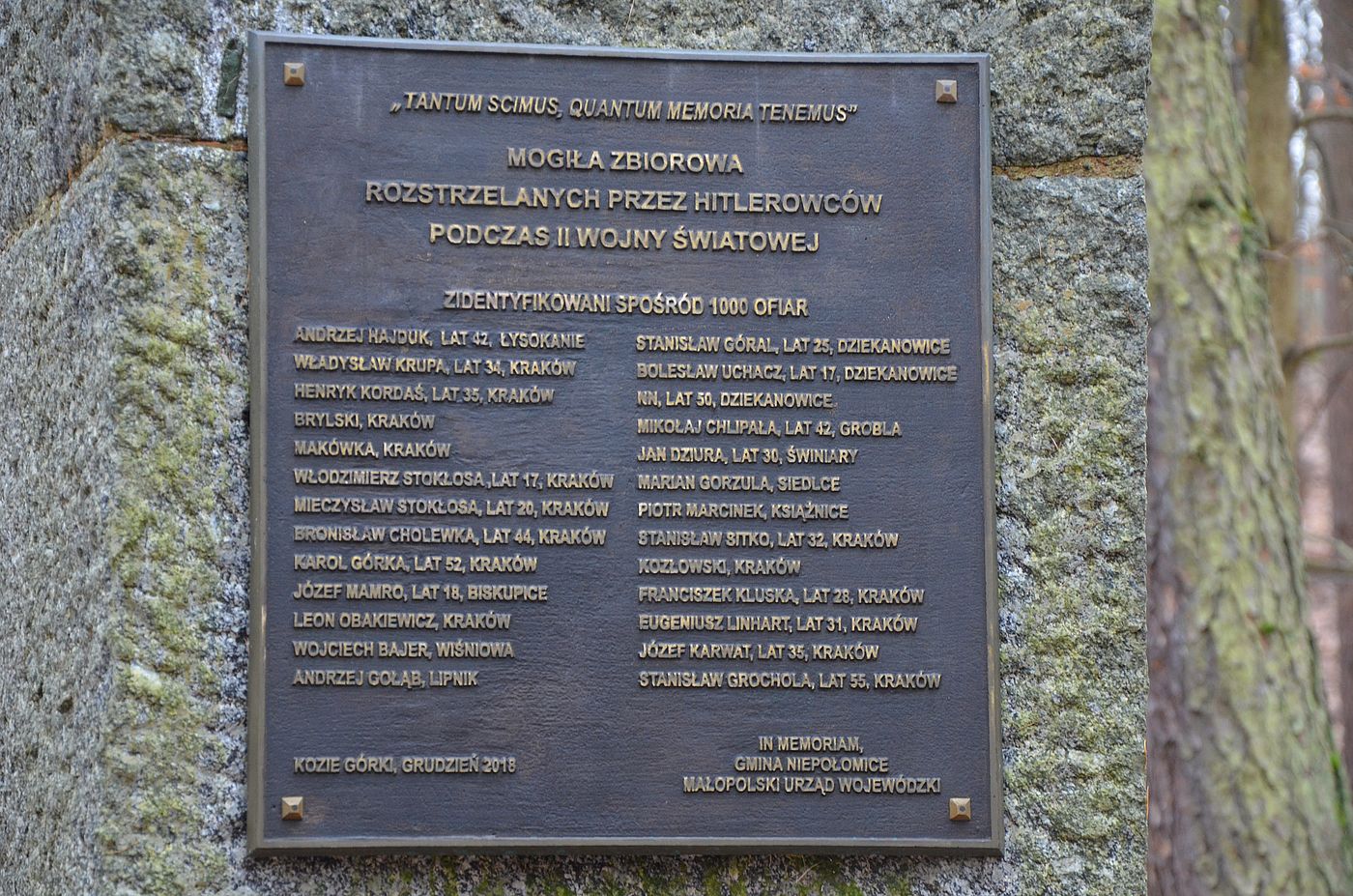 Tablica Stanisława Klimeckiego na pomniku w Puszczy Niepołomickiej. Fot. Janusz Ślęzak (IPN)