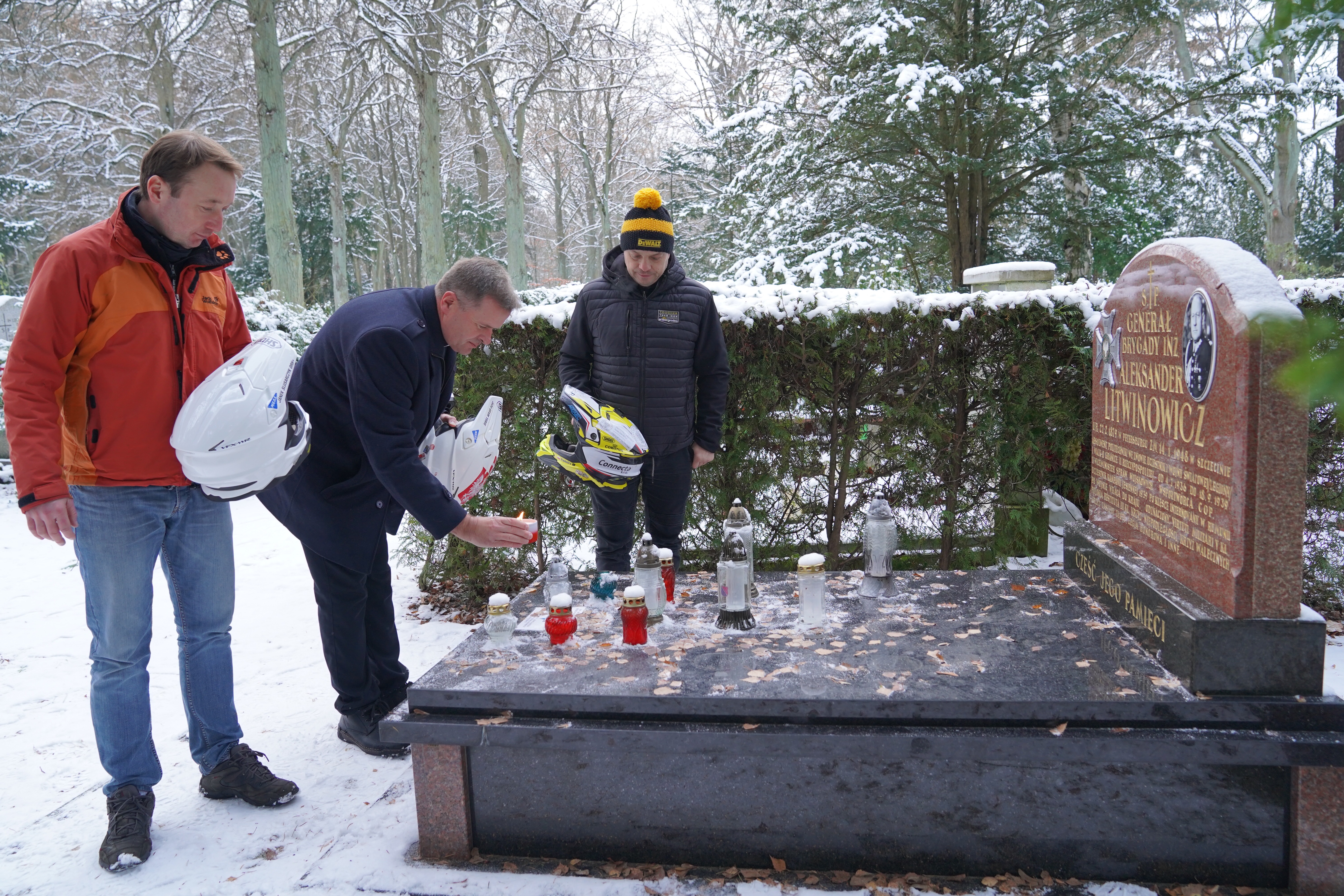 Przed Rajdem Dakar Bartłomiej Tabin razem z kolegami – ks. Marianem Augustynem i Janem Ślusarczykiem odwiedzili na Cmentarzu Centralnym grób gen. Aleksandra Litwinowicza.