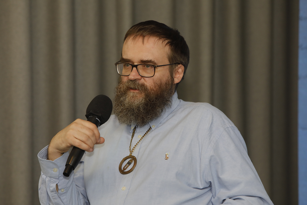 Spotkanie „Milicjanci, Bimber i Wampiry Andrzeja Pilipiuka” z cyklu „Uczy i bawi. Kultura popularna i historia” – Warszawa, 1 marca 2024. Na zdj. dr Adam Podlewski. Fot. Piotr Życieński (IPN)