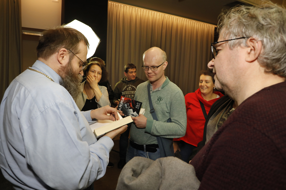Spotkanie „Milicjanci, Bimber i Wampiry Andrzeja Pilipiuka” z cyklu „Uczy i bawi. Kultura popularna i historia” – Warszawa, 1 marca 2024. Fot. Piotr Życieński (IPN)