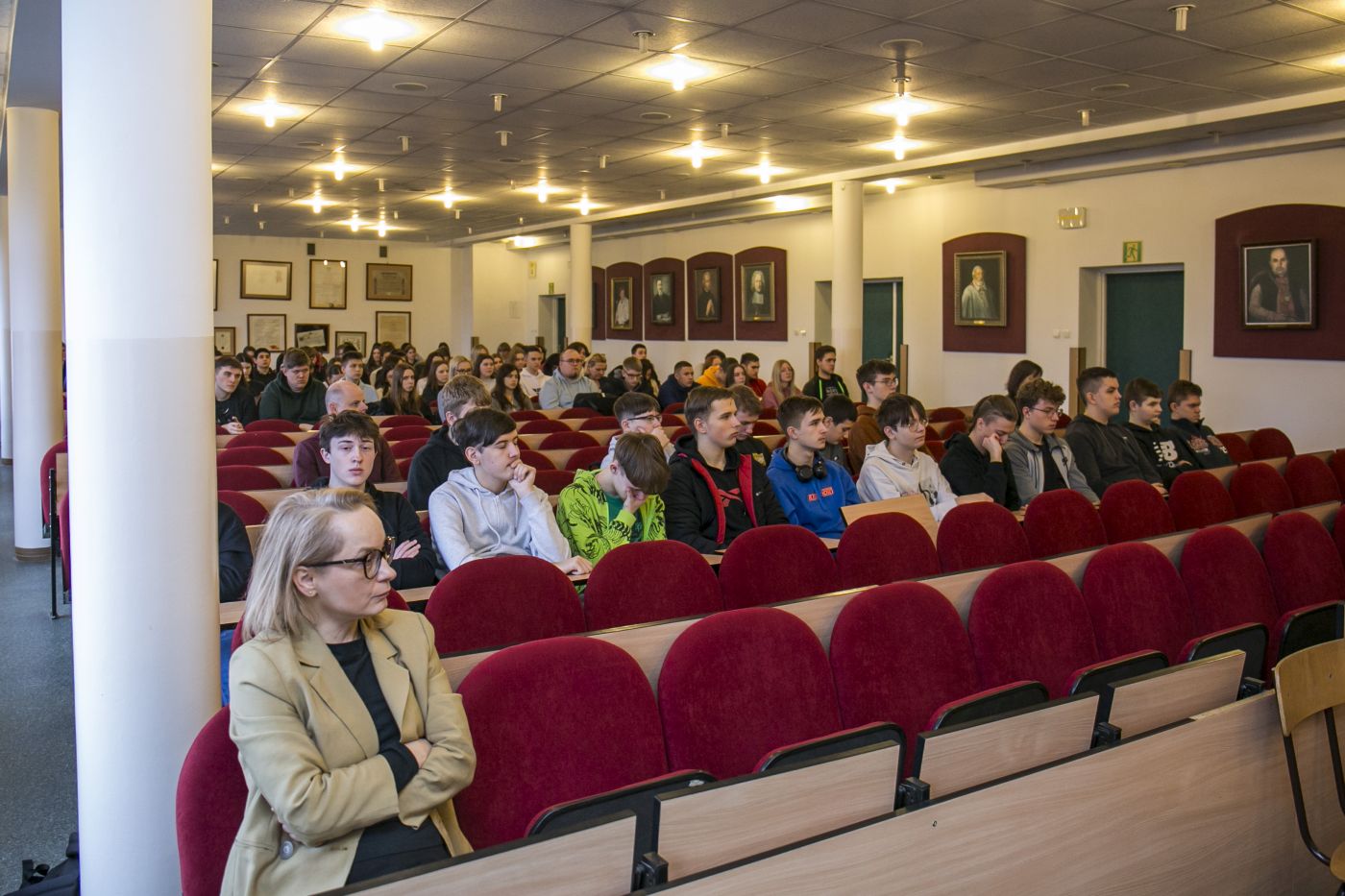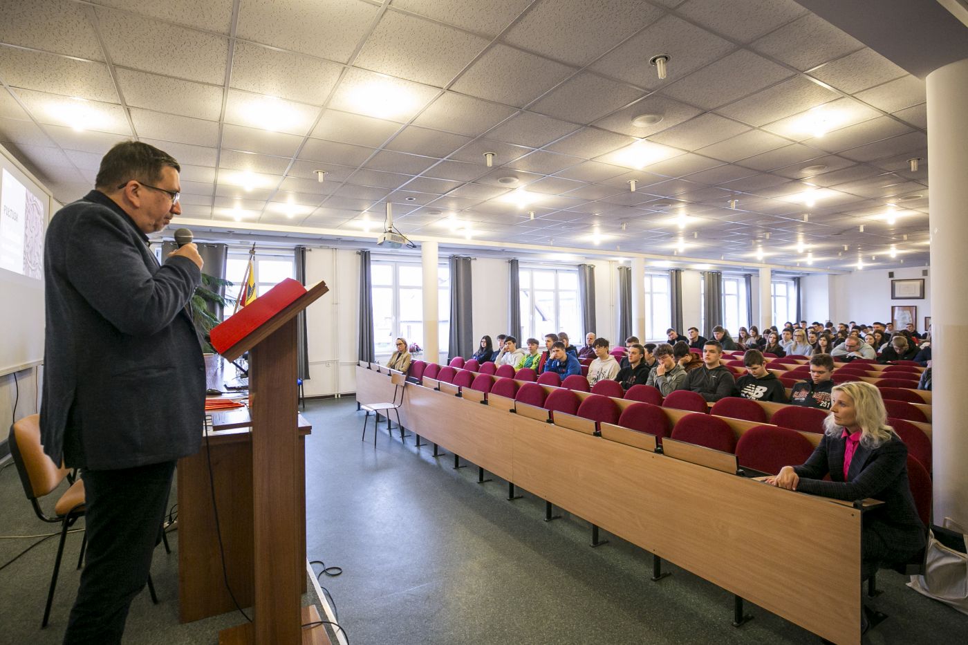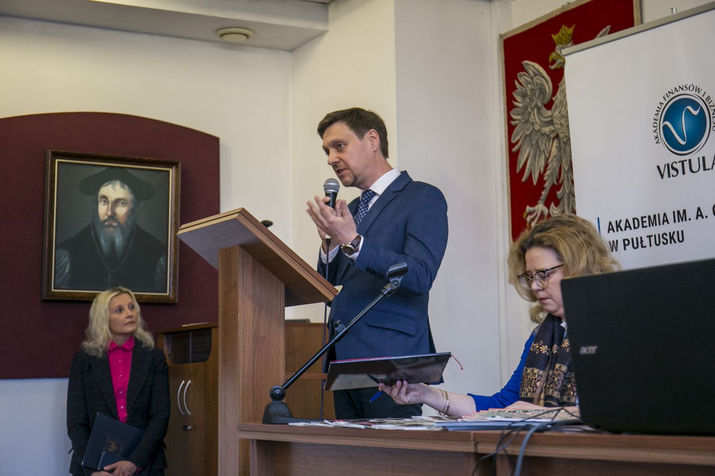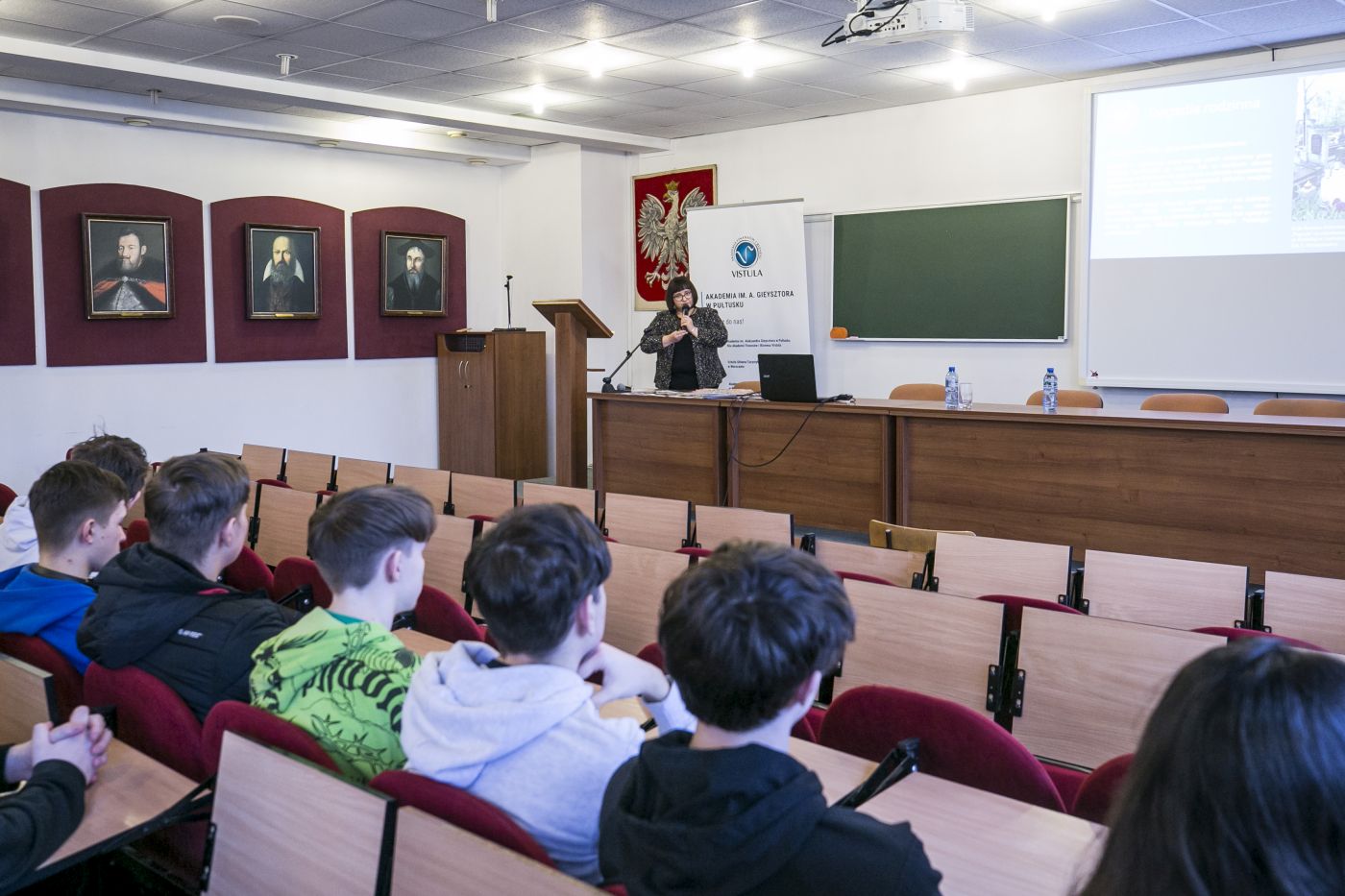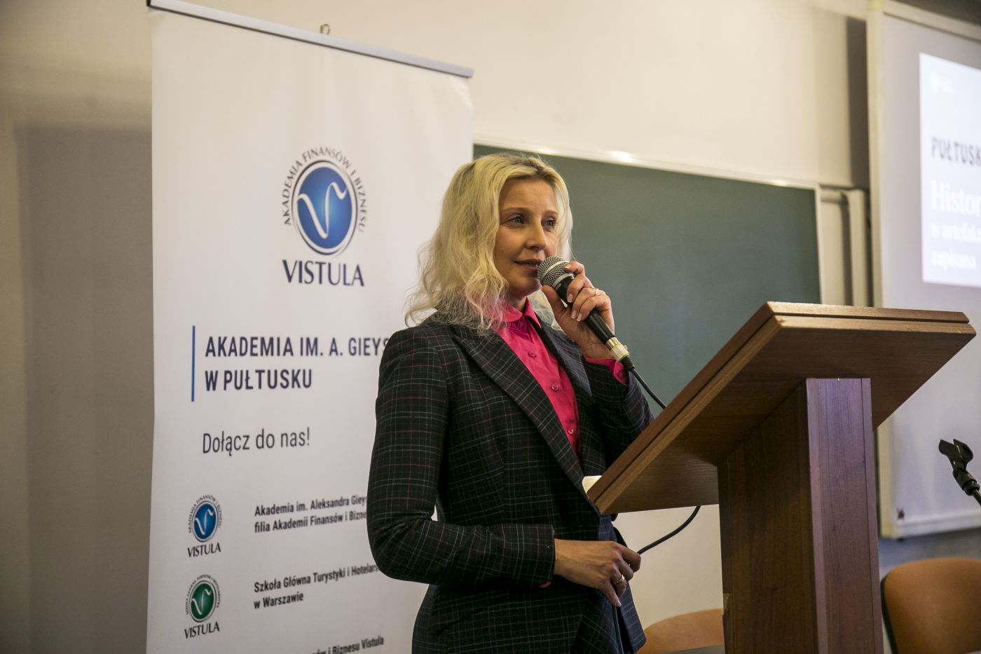 Zebranych gości i uczniów klas maturalnych z Zespołu Szkół Zawodowych im. Jana Ruszkowskiego, Liceum Ogólnokształcącego im. Piotra Skargi i Zespołu Szkół im. Bolesława Prusa w Pułtusku oraz Zespołu Szkół Centrum Kształcenia Rolniczego im. Aleksandra Świętochowskiego w Gołotczyźnie, powitała dr Marta Milewska, kierownik Izby Pamięci Strzelecka 8, a jednocześnie dyrektor Programu Kształcenia na kierunku historia w Akademii Finansów i Biznesu Vistula.