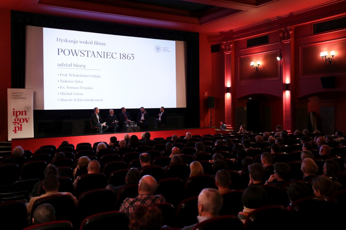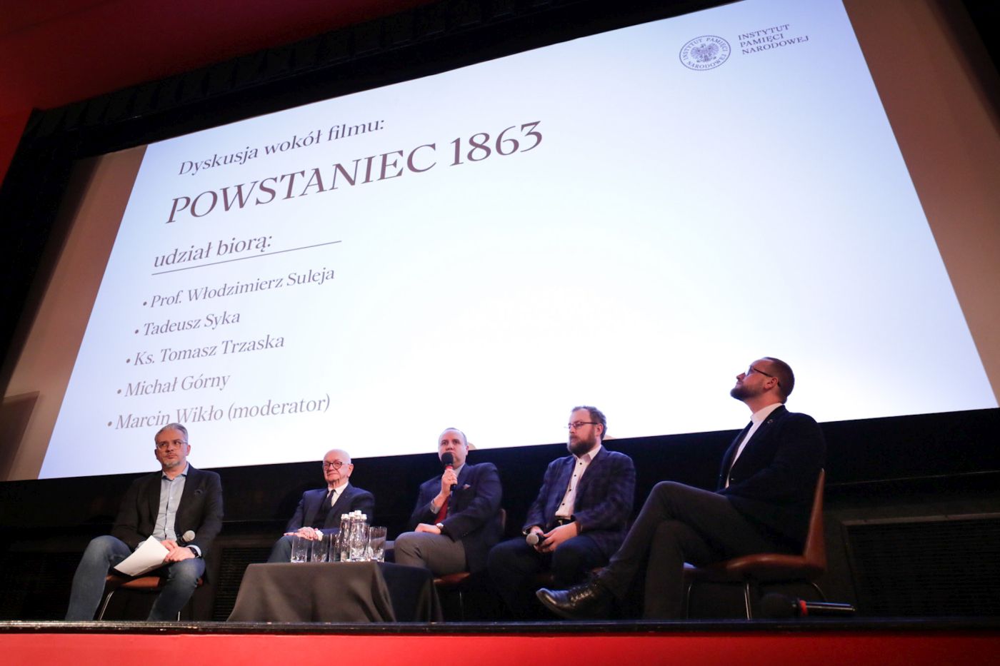 W panelu dyskusyjnym wzięli udział: reżyser filmu Tadeusz Syka, historyk z Biura Badań Historycznych Instytutu Pamięci Narodowej prof. dr hab. Włodzimierz Suleja, ks. Tomasz Trzaska – kapelan Muzeum Żołnierzy Wyklętych i Więźniów Politycznych PRL i pracownik Biura Poszukiwań i Identyfikacji IPN oraz Michał Górny – dyrektor Muzeum Ziemi Sochaczewskiej i Pola Bitwy nad Bzurą, rekonstruktor i specjalista od broni okresu walk powstańczych 1863–1864. W pokazie filmu uczestniczył także dr hab. Karol Polejowski, zastępca prezesa Instytutu Pamięci Narodowej.