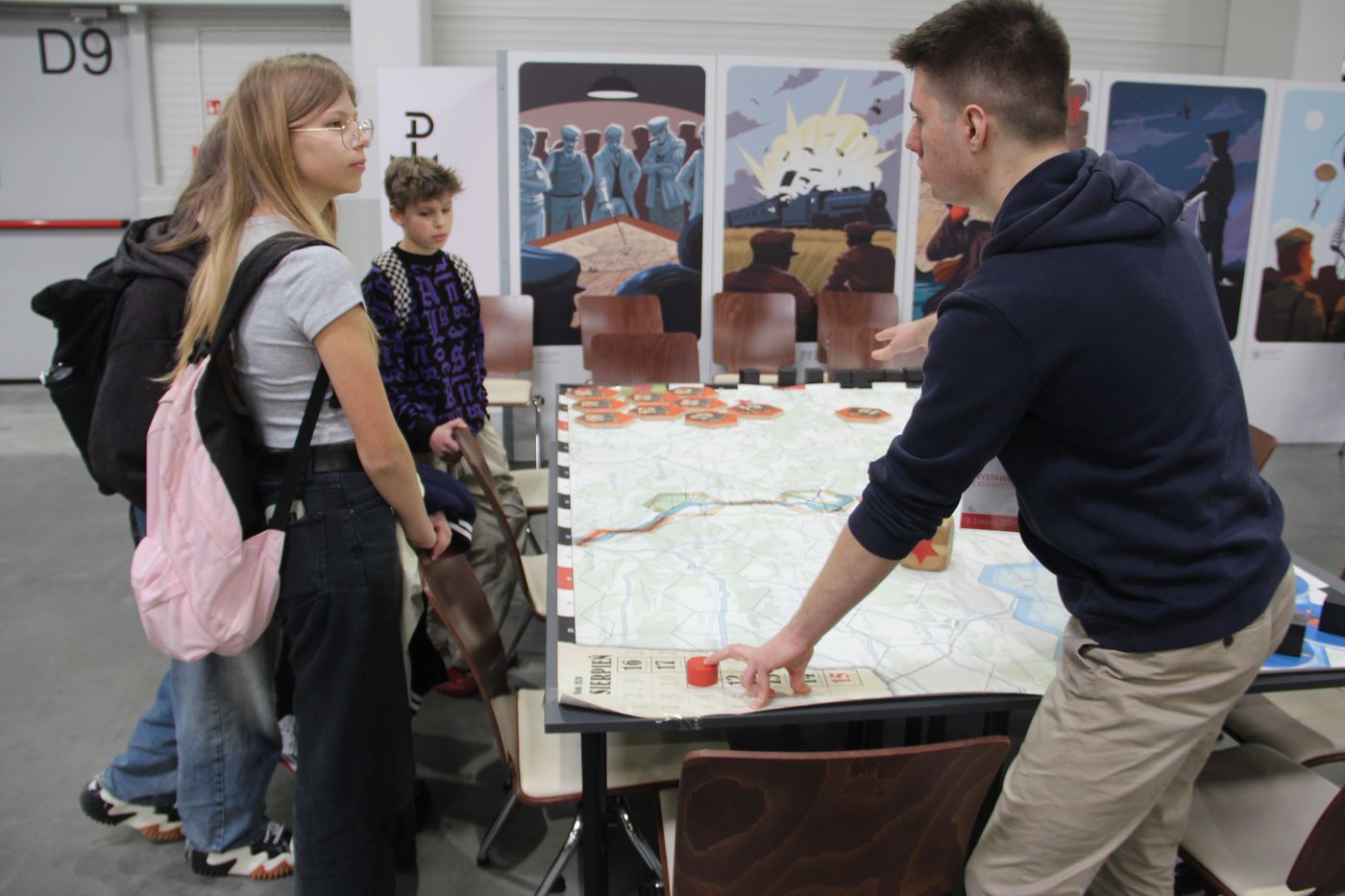 W sobotę i niedzielę na naszych stoiskach zaprezentowaliśmy m.in. „Cichociemnych. Spadochroniarzy Armii Krajowej”, „Orła”, „Misia Wojtka” oraz gry lotnicze. Największym wzięciem cieszyła się gra opowiadająca historię cichociemnych, a gracze mogli porozmawiać z jednym z autorów gry – Łukaszem Płatkiem z krakowskiego oddziału IPN. Roksana Szczypta-Szczęch przygotowała dla najmłodszych uczestników festiwalu warsztaty „Znak Polski Walczącej”. Na naszym stoisku wydawnictwa można kupić gry planszowe i inne wydawnictwa IPN.