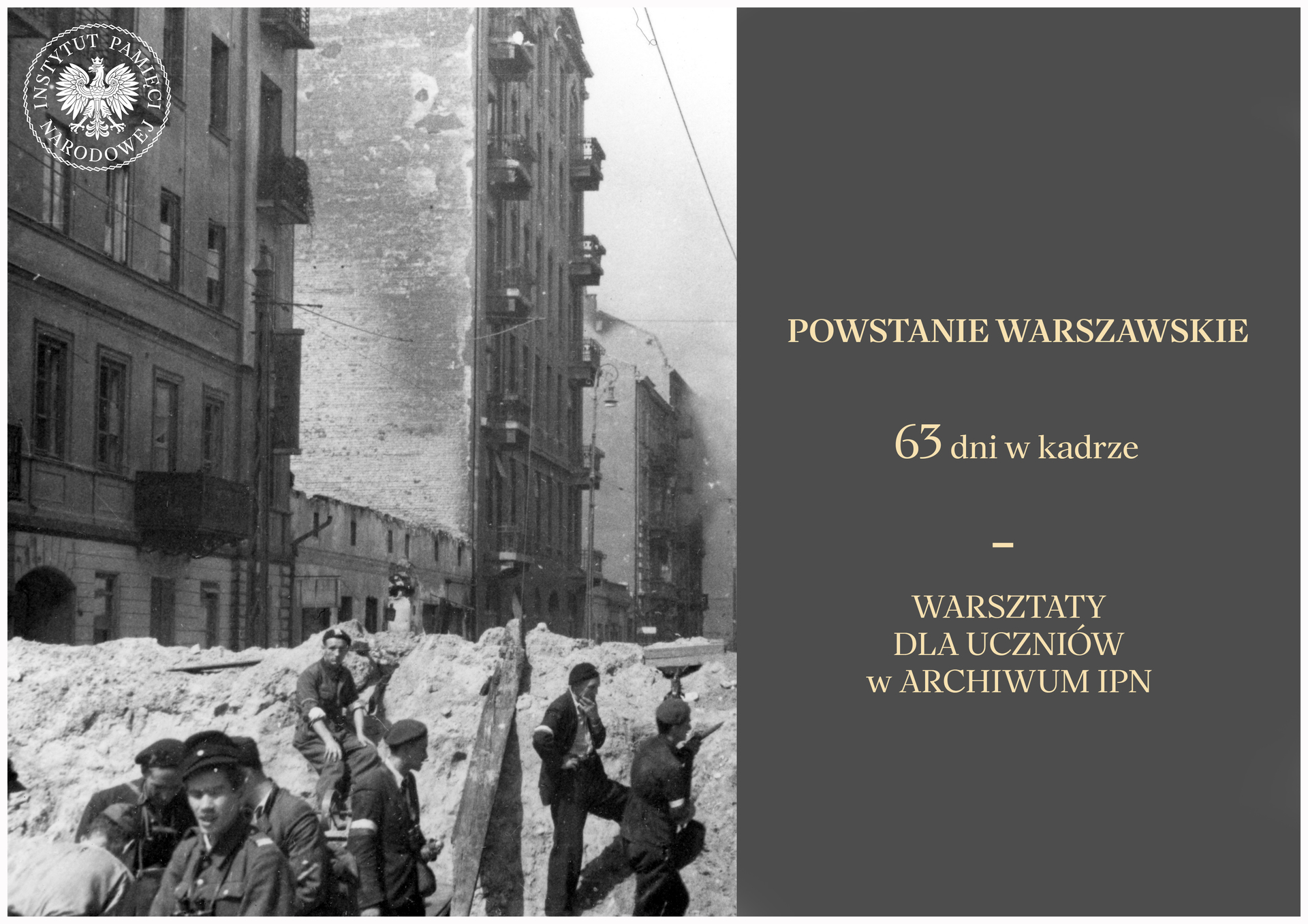 - Krótkie omówienie zadań pionu archiwalnego IPN. Prezentacja 63 zdjęć wykonanych podczas powstania warszawskiego i sylwetek powstańczych fotografów oraz ich dalszych losów.