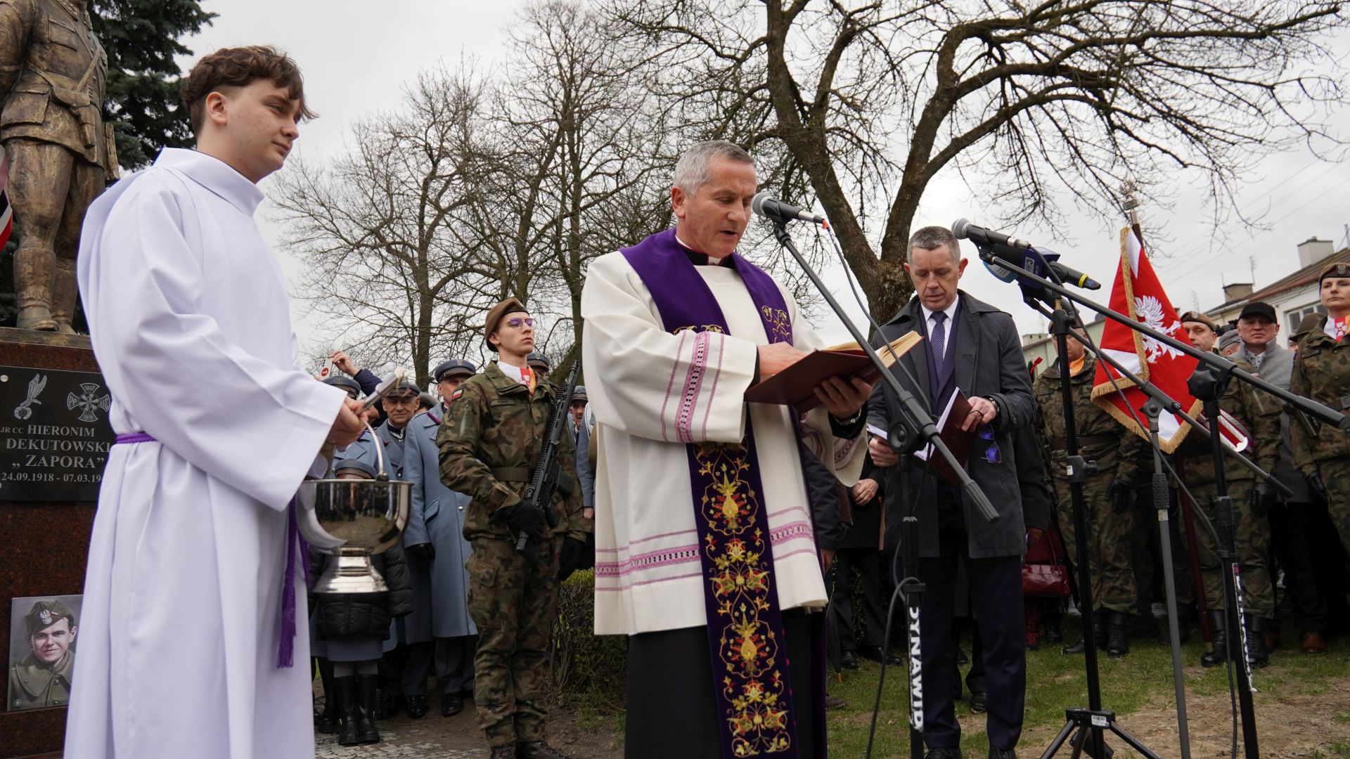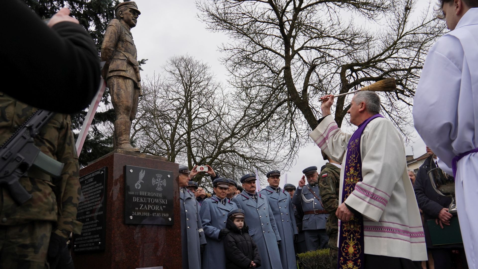 Swoją walką dla Rzeczpospolitej, swoim heroizmem zasłużył po stokroć na to upamiętnienie. Zasłużył sobie także na naszą wdzięczną pamięć. Kiedy w 1989 roku upadł w Polsce komunizm, myśleliśmy, że oto w krótkim czasie w sposób naturalny ci, którzy walczyli o wolność Polski, zostaną bohaterami, a ci, którzy Polskę zniewalali, poniosą za to odpowiedzialność. Tak się jednak nie stało. Długi czas w wolnej Polsce padały w przestrzeni publicznej słowa haniebne wobec Żołnierzy Wyklętych, wobec mjr. Hieronima Dekutowskiego. I nawet teraz słyszymy, że są ludzie, którym przeszkadza sam wizerunek naszego bohatera. Przy pomniku naszego bohatera trzeba powiedzieć, że jego walka zakończyła się strzałem w potylicę