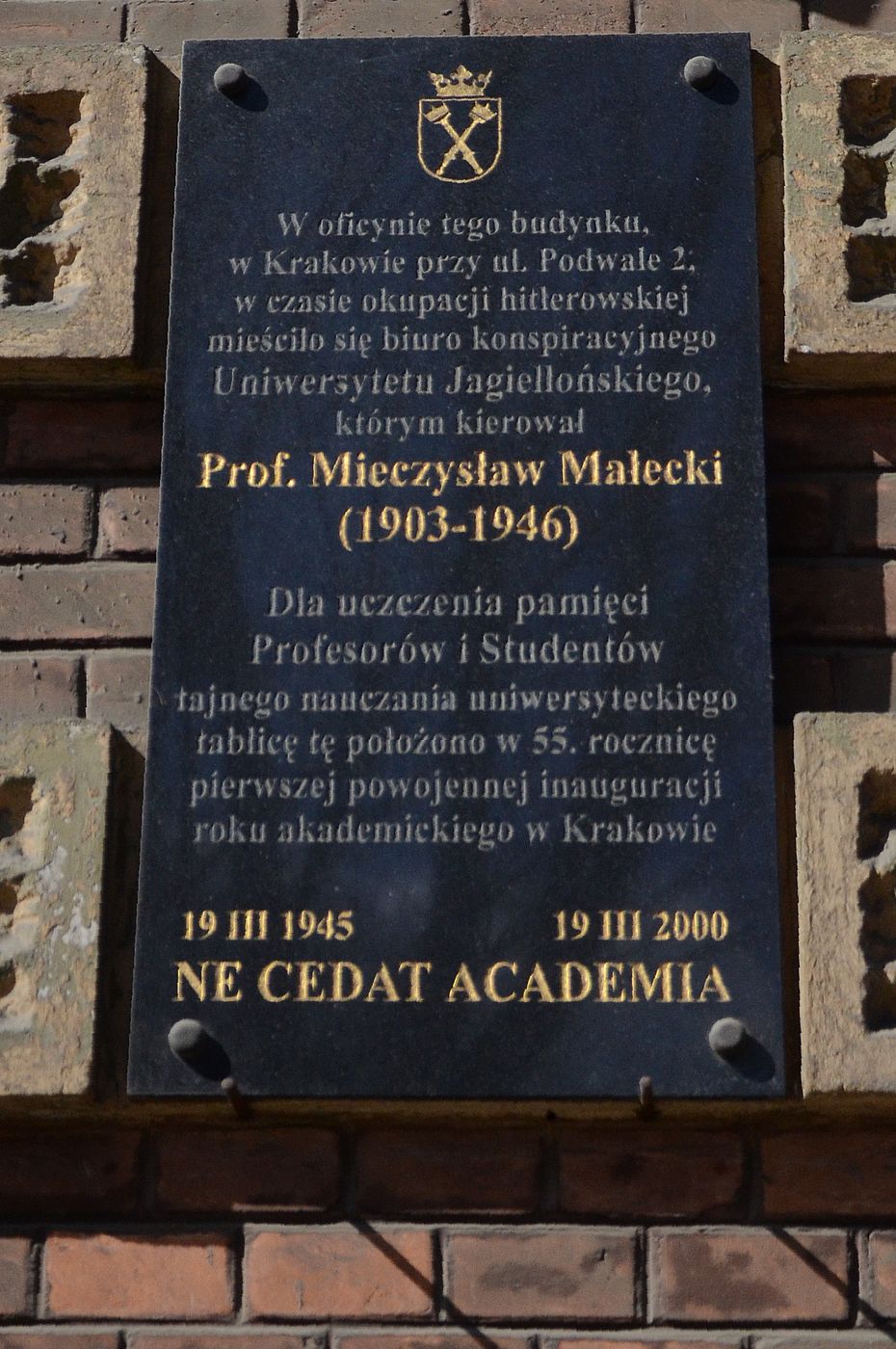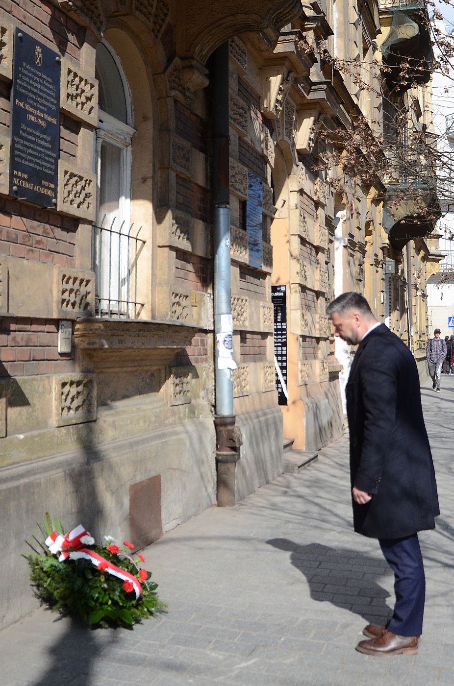 W związku z 79. rocznicą pierwszej powojennej inauguracji roku akademickiego na Uniwersytecie Jagiellońskim (marzec 1945), dyrektor Oddziału IPN w Krakowie dr hab. Filip Musiał złożył kwiaty pod tablicą na budynku przy ul. Podwale 2, gdzie podczas niemieckiej okupacji mieściło się biuro konspiracyjnego UJ.