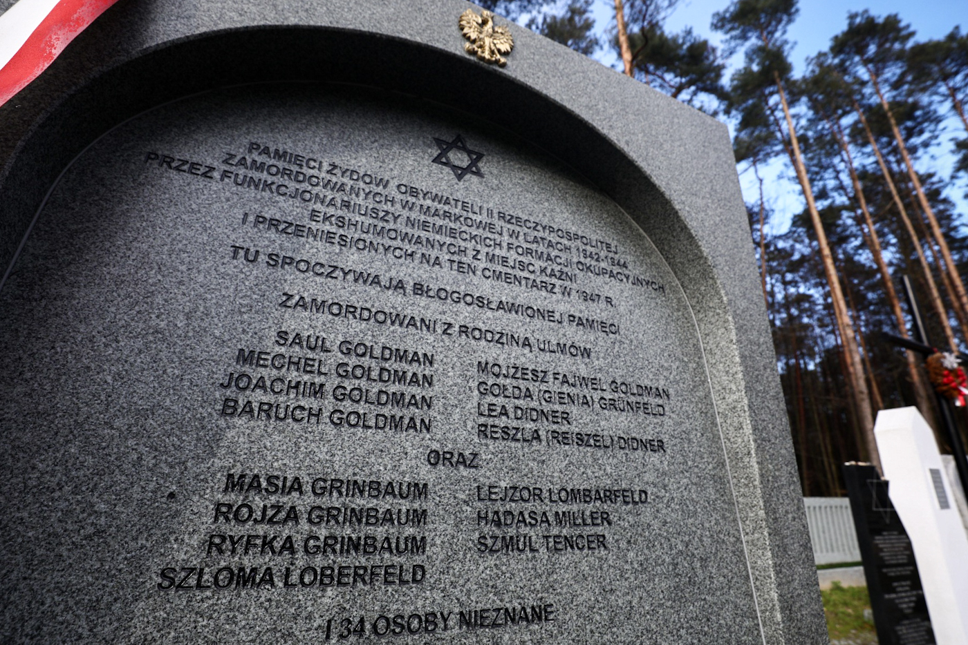 Pomnik na cmentarzu w Jagielle-Niechciałkach, upamiętniający Żydów, zamordowanych w Markowej przez Niemców – 24 marca 2024. Fot. Sławek Kasper (IPN) -