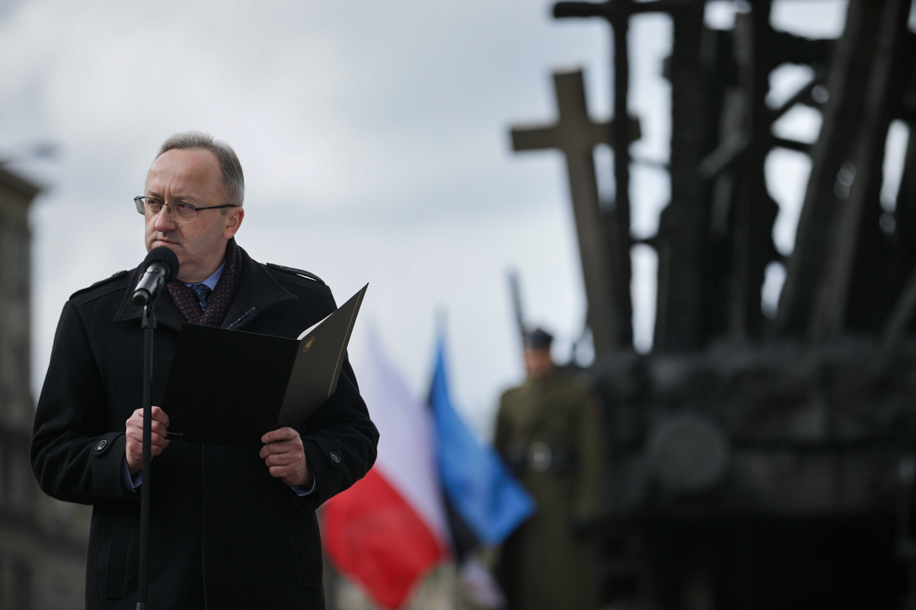 – Spotykamy się w 75. rocznicę straszliwej „marcowej deportacji”, która ruszyła w krajach bałtyckich w nocy z 25 na 26 marca 1949 roku. Z samej tylko Estonii, znów włączonej do Związku Sowieckiego, wywieziono na Syberię ponad 20 tysięcy osób, w większości kobiety i dzieci. Podobne wywózki na wschód dotknęły „za drugiego Sowieta” także Polaków : i tych, którzy zostali za Bugiem, na ziemiach włączonych do ZSRS, i tych w pojałtańskiej Polsce, również zniewolonej przez komunistów. To między innymi los tych ofiar symbolizuje pomnik Poległym i Pomordowanym na Wschodzie, przy którym się dziś zgromadziliśmy – ten wymowny wagon towarowy wyładowany krzyżami