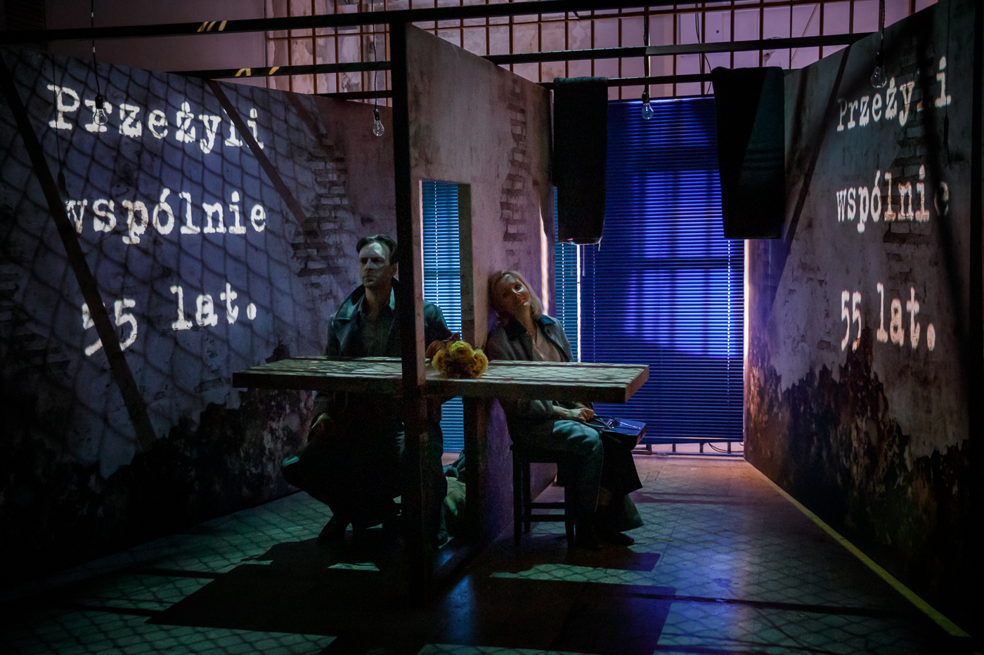 „Przez ścianę” to autorska sztuka teatralna Leszka Zdunia, inspirowana losem Wiesławy Pajdak i Jerzego Śmiechowskiego.