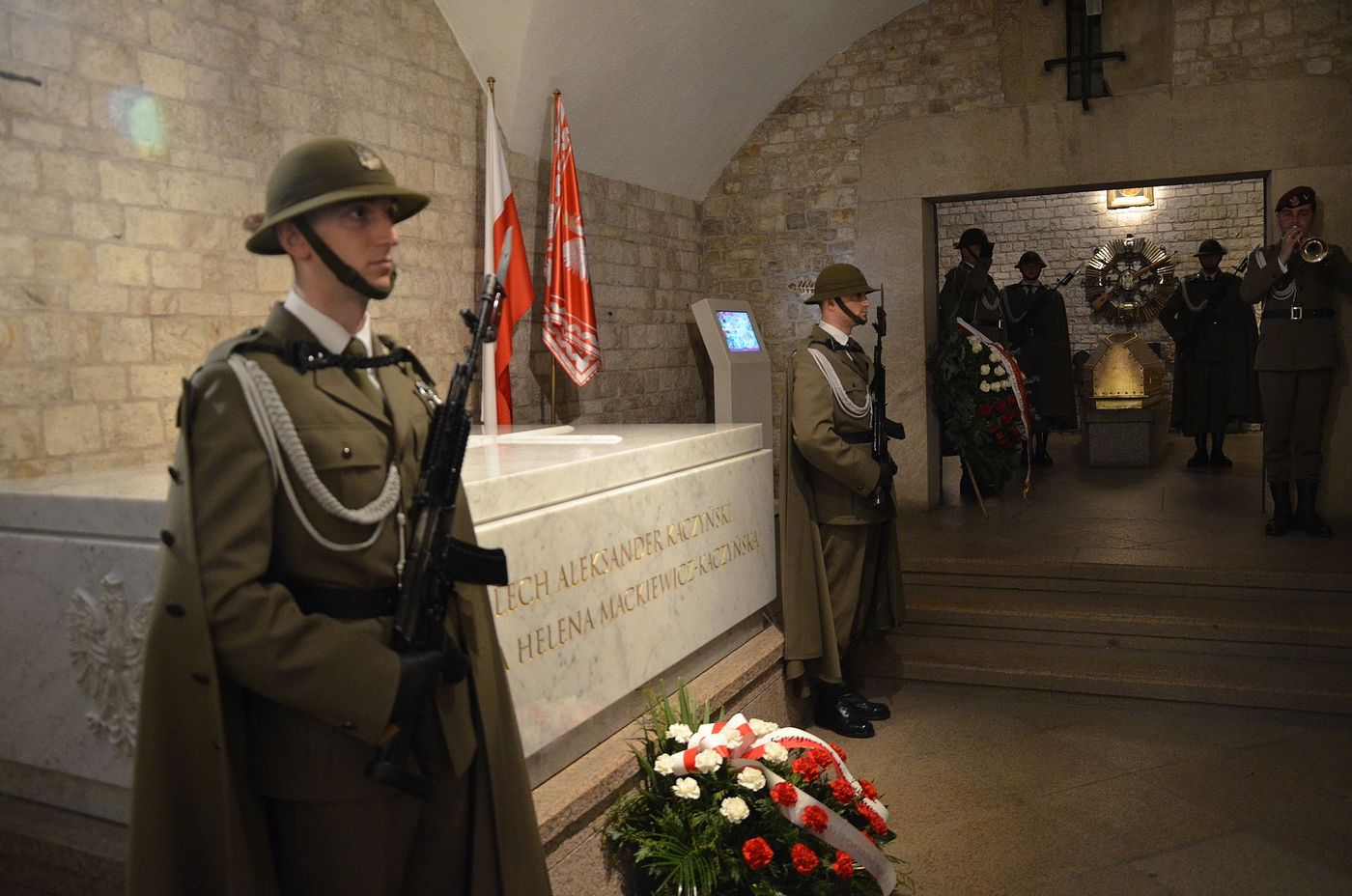 Wcześniej dr Szpytma oraz Krzysztof Jan Klęczar, wojewoda małopolski złożyli wieniec na sarkofagu pary prezydenckiej Marii i Lecha Kaczyńskich w krypcie katedry na Wawelu.