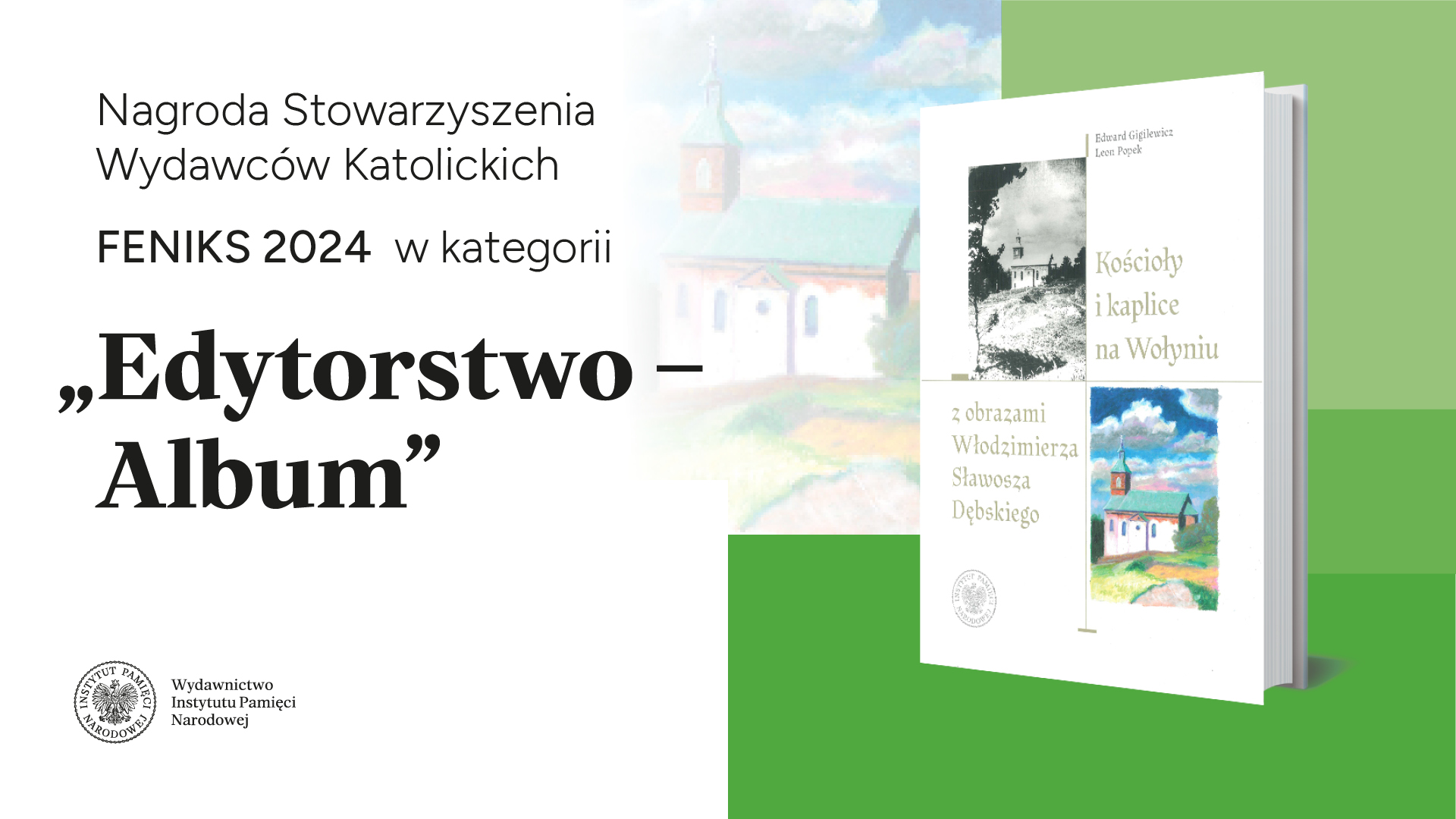 Nagrodę FENIKS 2024 w kategorii „Edytorstwo – Album” za publikację Edwarda Gigilewicza i Leona Popka „Kościoły i kaplice na Wołyniu z obrazami Włodzimierza Sławosza Dębskiego” otrzymały Wydawnictwo IPN oraz Towarzystwo Przyjaciół Krzemieńca i Ziemi Wołyńsko-Podolskiej.