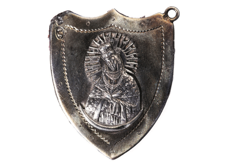 Ryngraf z wizerunkiem Matki Bożej Ostrobramskiej znaleziony w Katyniu (ze zbiorów Muzeum Katyńskiego)