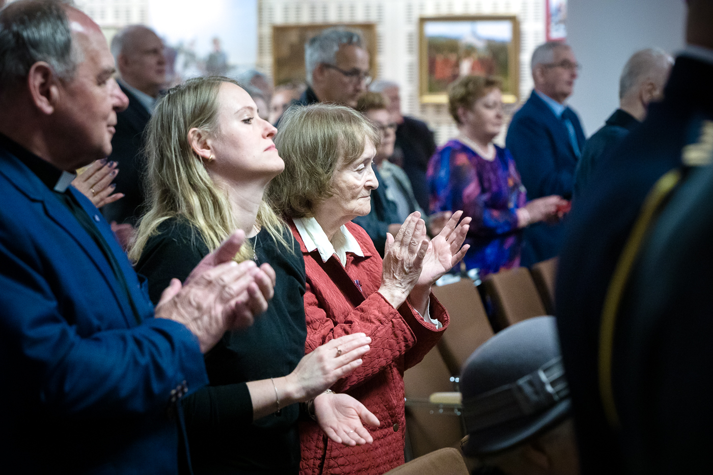 Druga część uroczystości odbyła się w Sali Tradycji Katedry Polowej Wojska Polskiego, podczas której wręczone zostały medale i odznaczenia osobom i instytucjom zaangażowanym w upowszechnianie wiedzy na temat zbrodni katyńskiej.