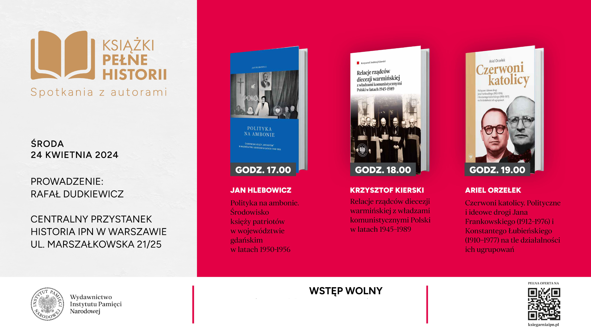 24 kwietnia 2024 roku w Przystanku Historia IPN przy ul. Marszałkowskiej 21/25 w Warszawie odbyły się spotkania z autorami publikacji Wydawnictwa IPN.