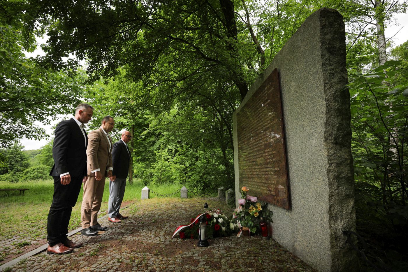 Po konferencji dr Karol Nawrocki, prezes IPN, dr Marek Szymaniak, dyrektor gdańskiego IPN oraz jego zastępca Waldemar Szulc złożyli kwiaty przy tablicy w Dolinie Śmierci, upamiętniającej ofiary Zbrodni Pomorskiej, znajdującej się niedaleko miejsca prac poszukiwawczych.