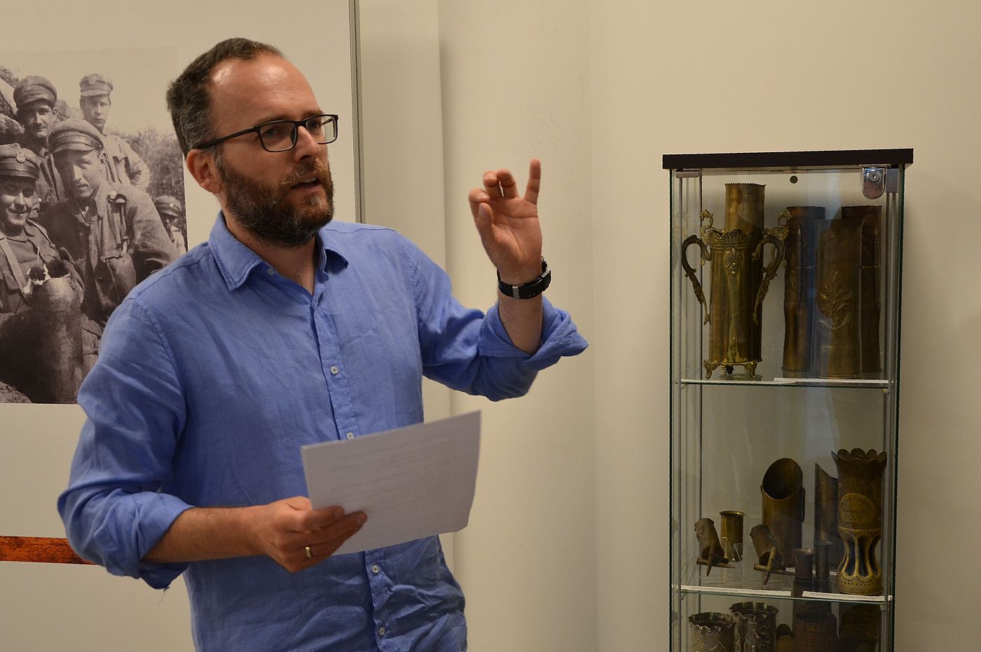 Wystawę przygotowali pracownicy krakowskiego oddziału IPN Cezary Pałka i Kamil Szkaradek, natomiast jej pomysłodawcą i współorganizatorem jest dr hab. Wiktor Szymborski, prof. UJ z Instytut Historii. Prezentujemy przedmioty wykonane przez żołnierzy z tzw. złomu wojennego czyli wszelkich materialnych pozostałości po działaniach zbrojnych. W wernisażu wystawy wziął udział zastępca dyrektora Oddziału IPN w Krakowie dr Michał Wenklar.