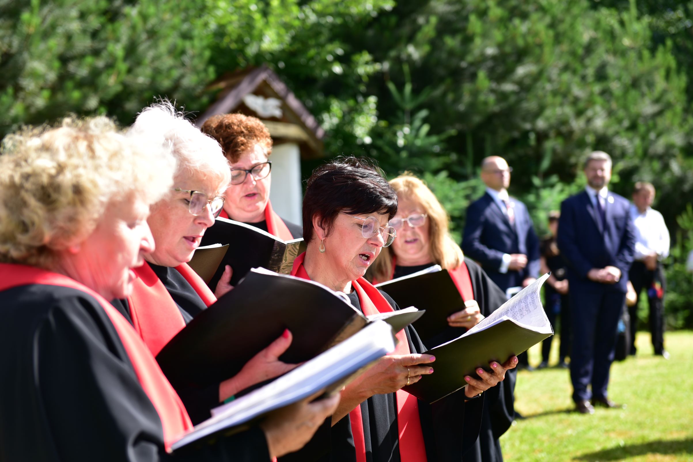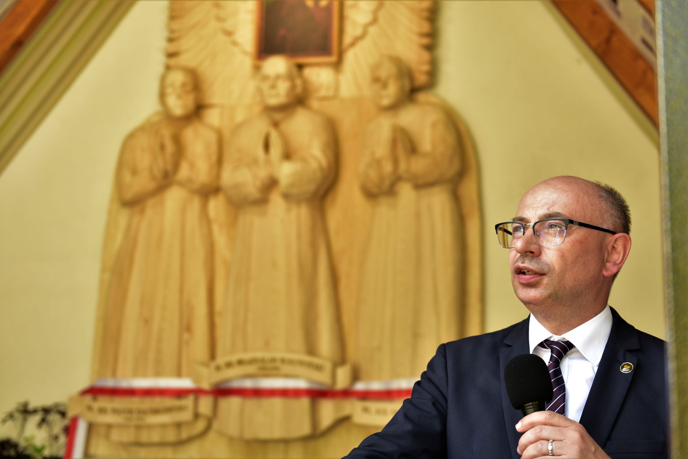 Następnie dr Mateusz Szpytma wraz z Pawłem Marczyńskim prezesem Stowarzyszenia im. bł. Ks. Władysława Bukowińskiego „Ocalenie” uroczyście odsłonili płaskorzeźbę.