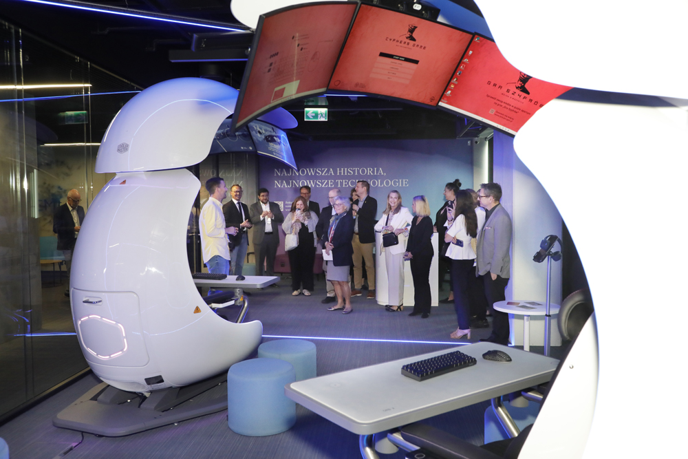 Następnie przybyli goście zapoznali się z ofertą edukacyjną przygotowaną przez Biuro Nowych Technologii IPN. Gry komputerowe oraz aplikacje informatyczne bazujące na wynikach badań naukowych, służące edukacji dzieci i młodzieży przedstawił Tobiasz Wultański, kierownik projektów w Biurze Nowych Technologii. Goście otrzymali anglojęzyczną wersję raportu „Immersyjna edukacja historyczna. W stronę nowych ścieżek edukacyjnych”.