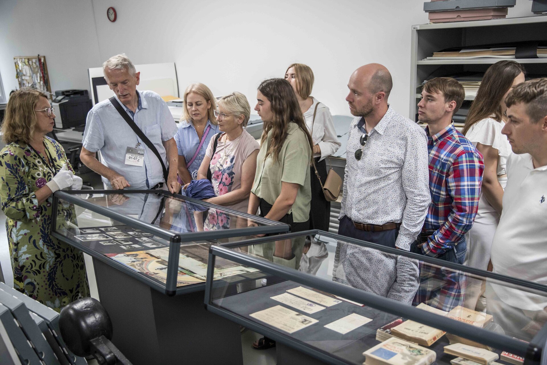 Grupę powitała dyrektor AIPN Marzena Kruk, która zaprosiła gości do zwiedzenia archiwum i zapoznania się z bogactwem dokumentacyjnym zgromadzonym w zasobie Instytutu Pamięci Narodowej. Goście odwiedzili pracownię konserwacji akt, w której mieli możliwość zobaczenia, jakimi metodami zabezpieczane i przygotowywane do skanowania są najstarsze i najbardziej zniszczone archiwalia. W pracowni digitalizacji odwiedzający dowiedzieli się, jak wielkie znaczenie ma cyfryzacja dokumentów. Szczególne zainteresowanie gości wzbudziło skanowanie obiektów trójwymiarowych.