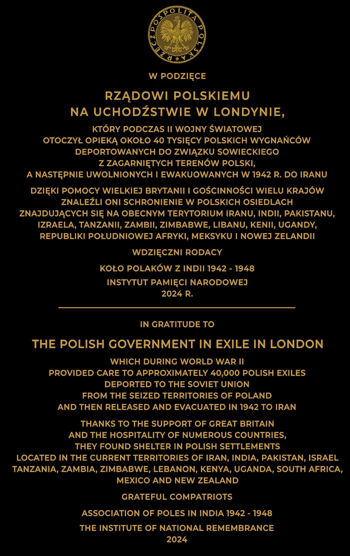 – Rząd Polski na Uchodźstwie dbał o to, aby Ci którzy ocaleli znaleźli godne miejsce do życia i przeżycia zawieruchy wojennej. Dlatego dzięki przychylności i pomocy władz Zjednoczonego Królestwa Wielkiej Brytanii udało się ponad 40 tys. polskich cywilów kobiet, dzieci i osób starszych w różnych miejscach świata rozlokować. Tam w Indiach, Nowej Zelandii, Meksyku, krajach południowoafrykańskich znaleźli się w otoczeniu ludzi, którzy okazali im serce i pomoc. I o tym też musimy pamiętać