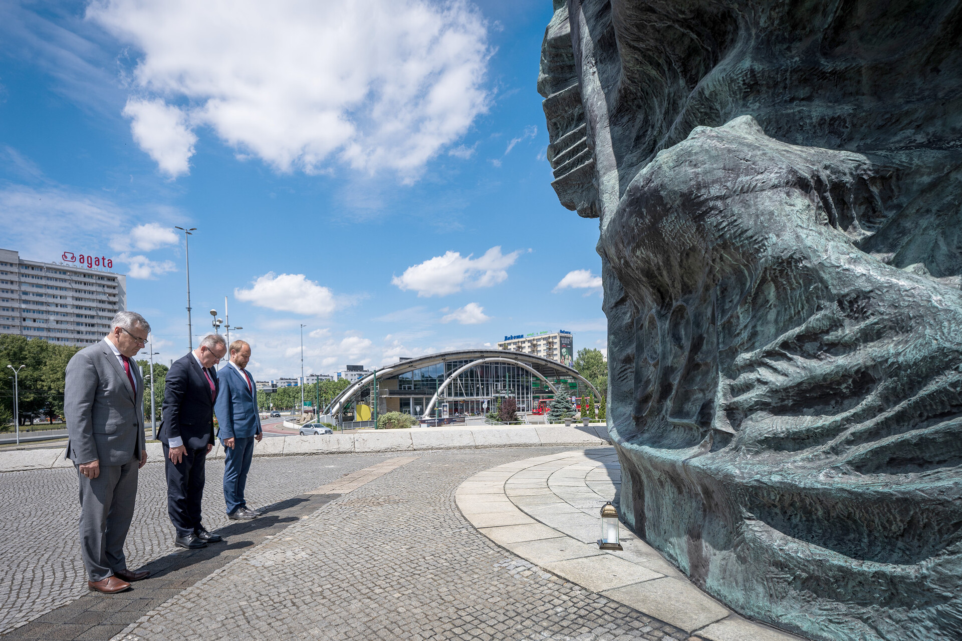 Delegacja IPN z zastępcą prezesa dr. hab. Karolem Polejowskim na czele zapala znicz pod Pomnikiem Powstań Śląskich – 5 lipca 2024. Fot. Krzysztof Łojko (IPN) -