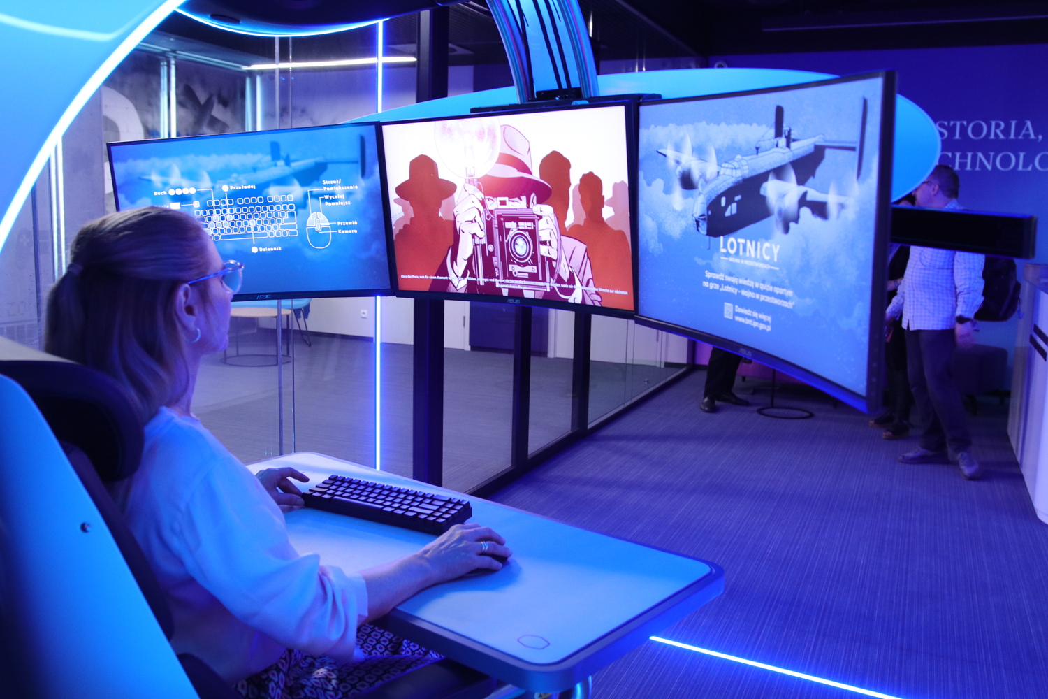 Tobiasz Wultański z Biura Nowych Technologii IPN zaprezentował gościom immersyjną ofertę edukacyjną Instytutu. Szczególne zainteresowanie wzbudziła strefa nowych technologii, w której historia jest opowiadana za pomocą najnowocześniejszych narzędzi, w tym kapsuł gamingowych.