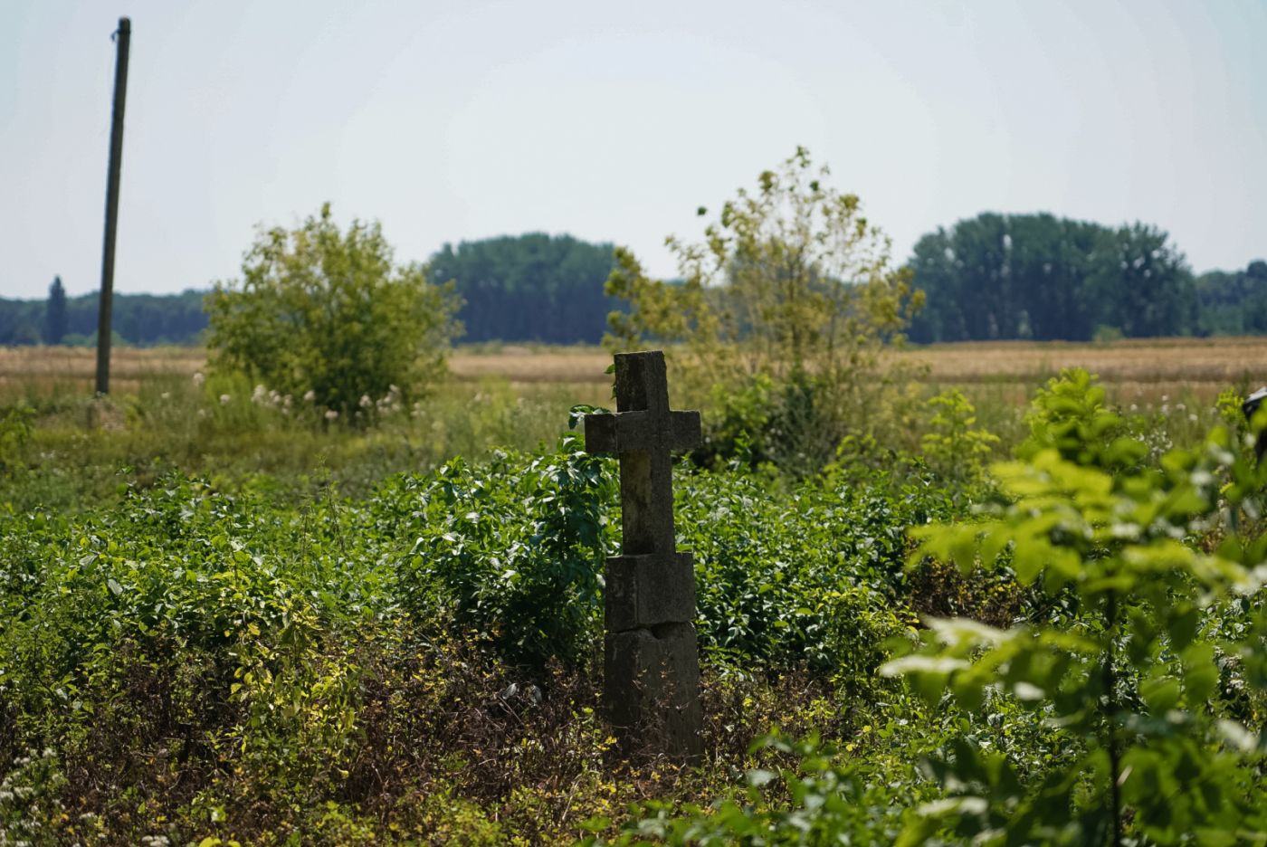 Dr hab. Karol Polejowski, wbił w ziemię symboliczny krzyż, w miejscu gdzie mogą spoczywać żołnierze WP, polegli w walce z Sowietami – Sokul (Ukraina), 13 lipca 2024. Fot. Mateusz Niegowski (IPN) -