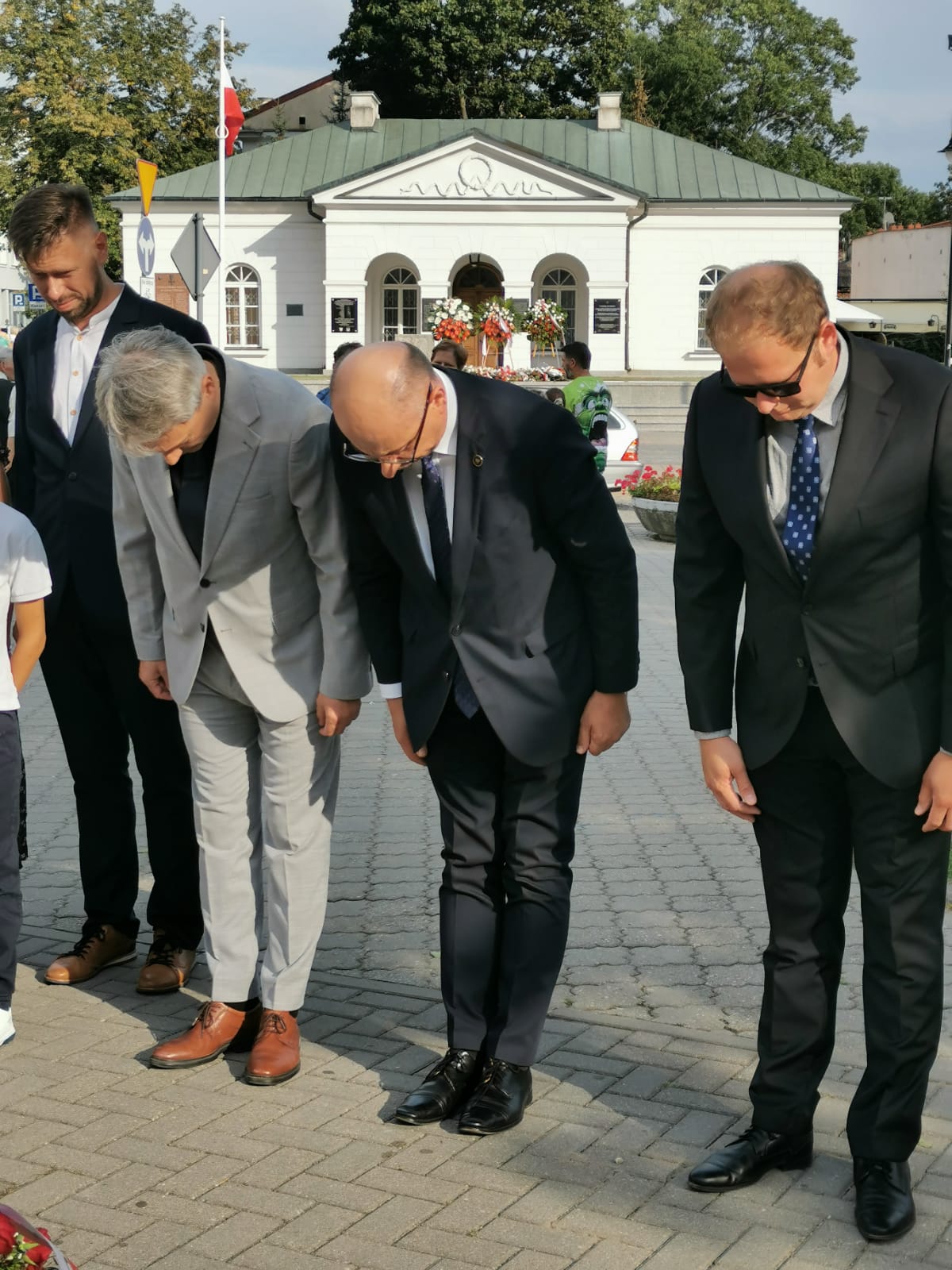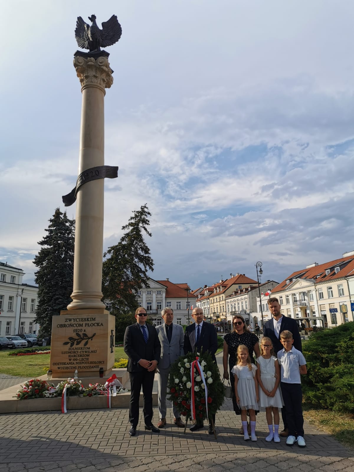 Premierę widowiska o Wincentym Witosie „Trzy razy On” poprzedziło złożenie wieńca pod pomnikiem upamiętniającym wyzwolenie Płocka z bolszewickiej okupacji 18 sierpnia 1920 roku. Zastępcy prezesa IPN dr. Mateuszowi Szpytmie towarzyszyli dyrektor Biura Edukacji Narodowej dr Adam Pleskaczyński, dyrektor Biura Wydarzeń Kulturalnych Krystian Iwanow oraz krewni Wincentego Witosa – praprawnuk Wojciech Steindel z żoną, synem i córkami.