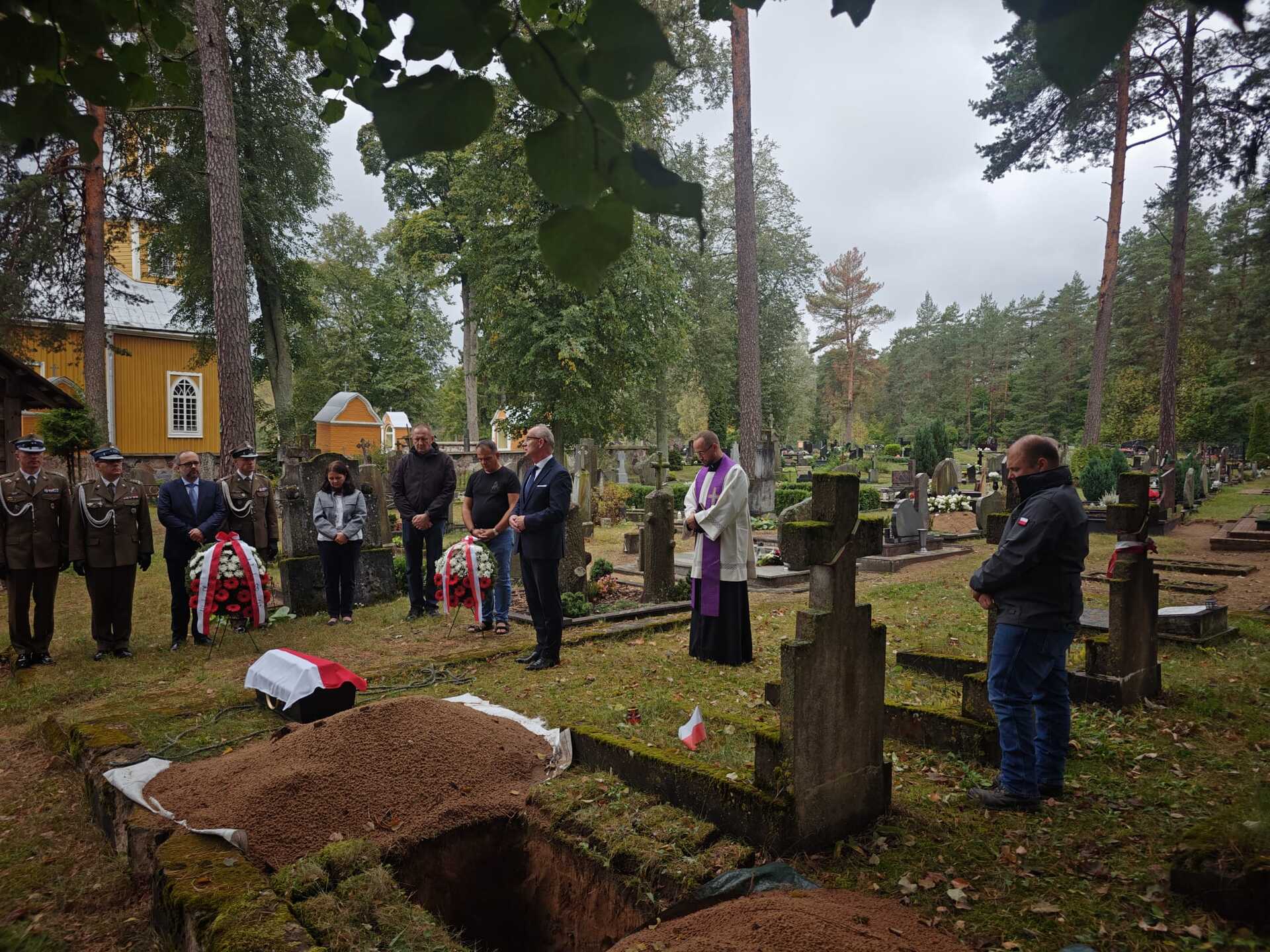 W uroczystościach pogrzebowych wzięli udział m.in.: dr hab. Krzysztof Szwagrzyk, zastępca prezesa Instytutu Pamięci Narodowej i dyrektor Biura Poszukiwań i Identyfikacji IPN, płk Sławomir Pawlikowski, attaché obrony, wojskowy, morski i lotniczy Ambasady RP w Wilnie, delegat Biskupa Polowego gen. Wiesława Lechowicza, pełniący służbę na terenie Litwy, żołnierze Wojska Polskiego, wolontariusze ze Stowarzyszenia Odra – Niemen oraz Polacy mieszkający w Marcinkańcach.