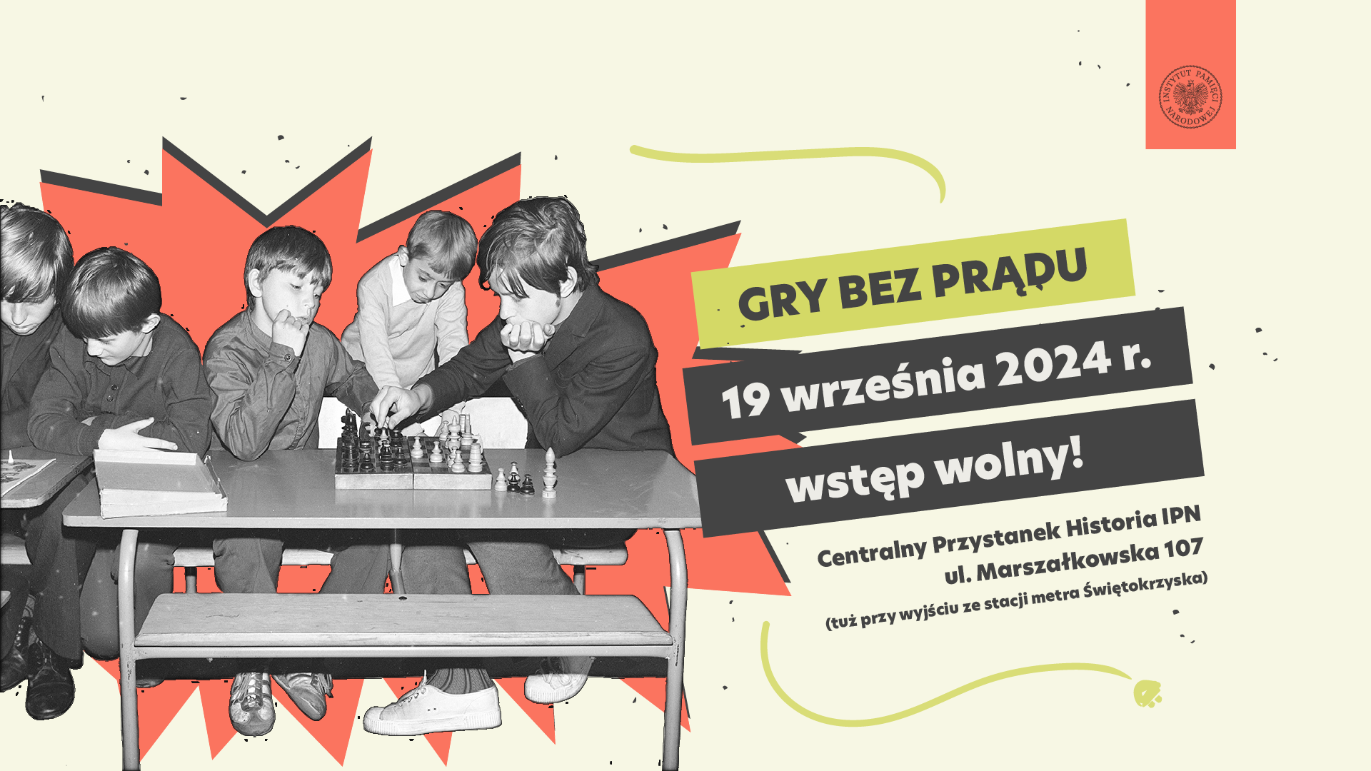 „Gry bez prądu” poprowadzą edukatorzy z Centralnego Przystanku Historia IPN: dr Adam Podlewski oraz Michał Rastaszański. Spotkania będą odbywać się cyklicznie – w każdy trzeci czwartek miesiąca o godz. 17.30 w Centralnym Przystanku Historia IPN im. Prezydenta Lecha Kaczyńskiego przy ul. Marszałkowskiej 107 w Warszawie. Udział w wydarzeniu jest bezpłatny i nie wymaga wcześniejszej rezerwacji miejsca.