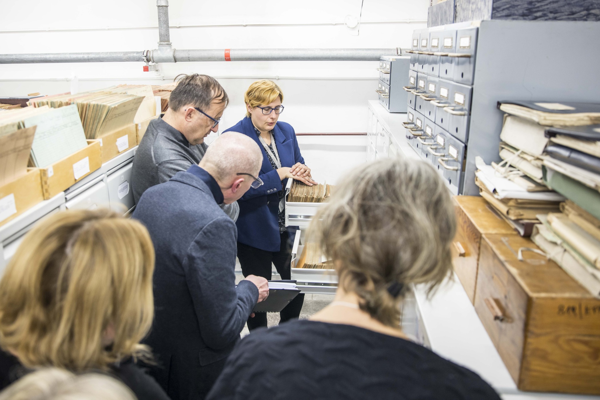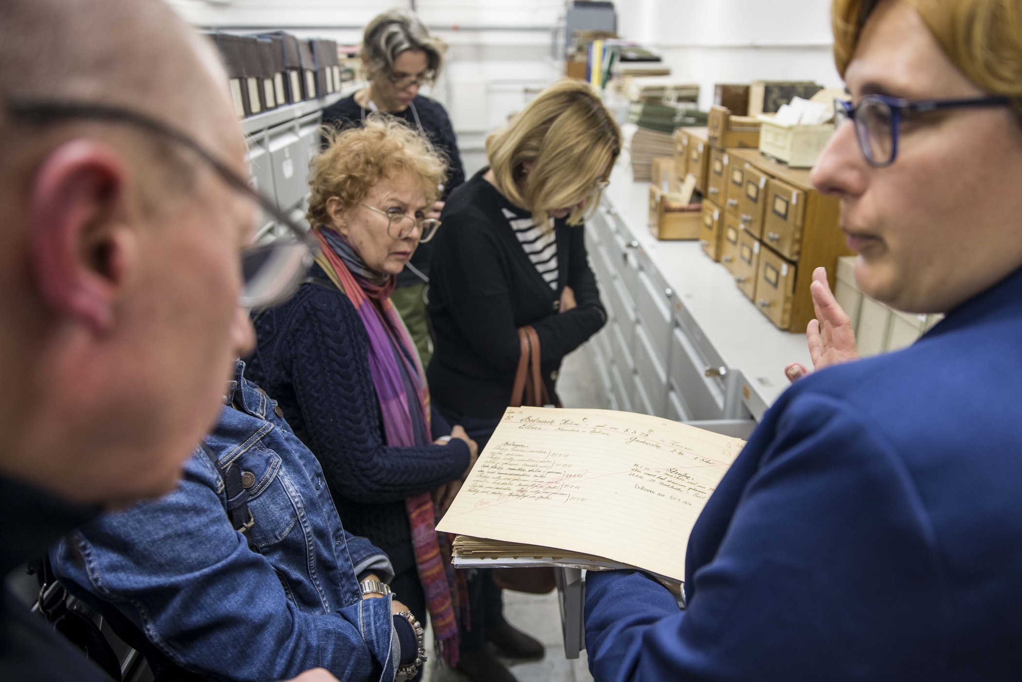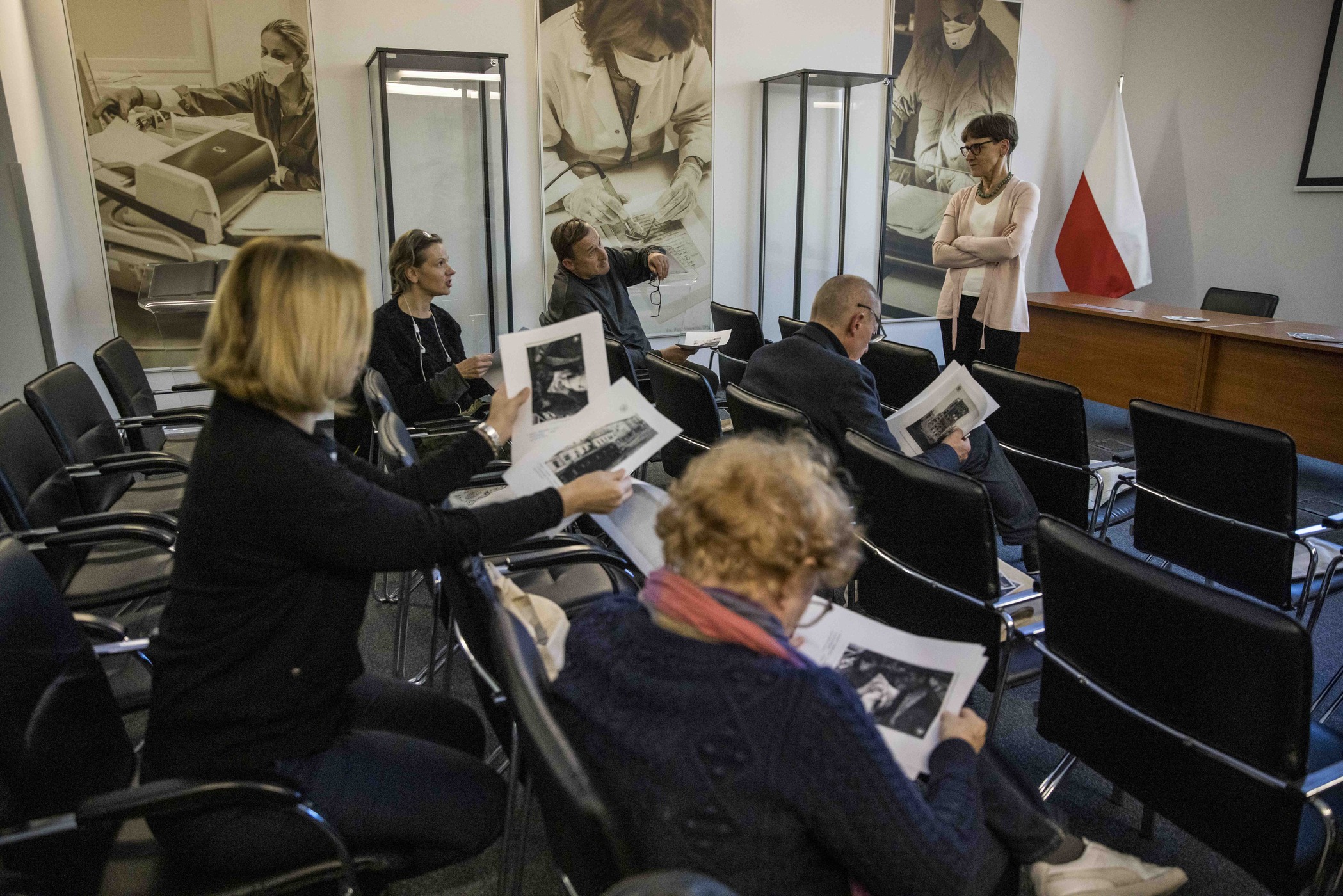 Spotkanie było też okazją do zaproszenia nauczycieli do nieudostępnianego zazwyczaj magazynu, w którym przechowywane są dokumenty i pomoce ewidencyjne ze zbiorów po b. Głównej Komisji Badania Zbrodni Hitlerowskich w Polsce.