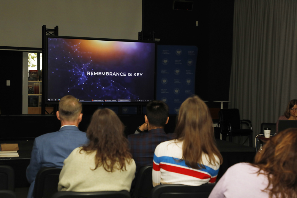 Grupę młodzieży przywitała Joanna Kumor, naczelnik Wydziału Kontaktów Międzynarodowych z Biura Współpracy Międzynarodowej, która opowiedziała o pracy, misji i zadaniach Instytutu Pamięci Narodowej.