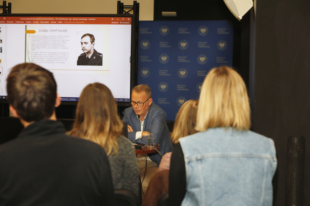 Kolejny punkt spotkania poprowadził Bogusław Czerwiński, prokurator Głównej Komisji Ścigania Zbrodni przeciwko Narodowi Polskiemu. Przedstawił on główne zadania swojego biura i przytoczył przykłady śledztw, prowadzonych przez pion śledczy IPN, związanych ze zbrodniami komunistycznymi oraz nazistowskimi. Omówił przy tym problemy, z jakimi mierzą się prokuratorzy względem osób, które popełniły przestępstwa wiele lat temu. Prokurator przytoczył przykład generała Czesława Kiszczaka, któremu umorzono proces ze względu na słabą kondycję fizyczną i mentalną uwarunkowaną wiekiem. Jakiś czas później w prasie ukazały się zdjęcia ukazujące generała bawiącego się z psem lub noszącego torby z zakupami, a z kolei udzielony mediom wywiad dowiódł sprawności umysłowej generała. Wystąpienie zakończył opisem procesu mordercy Czesława Jana Kukuczki, który został zastrzelony próbując przedostać się do Berlina Zachodniego. Za kilka dni okaże się, czy oskarżony o morderstwo Kukuczki funkcjonariusz Stasi zostanie ukarany.