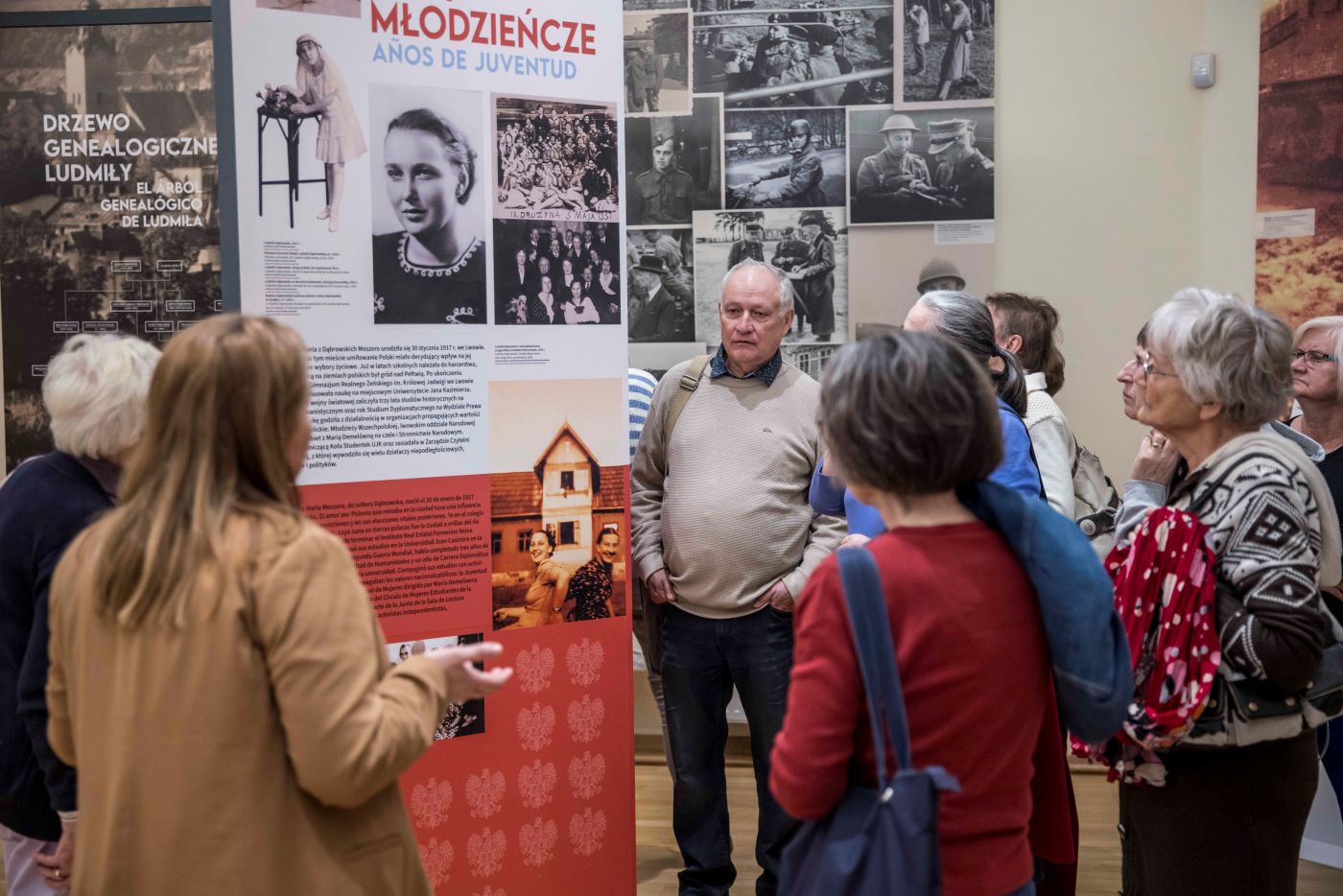 Po ekspozycji gości oprowadziła kuratorka wystawy Agnieszka Sodel (AIPN), która opowiedziała również historię pozyskania pamiątek i dokumentów związanych z rodziną Moszoro do zbiorów Instytutu. Anna Lasek (AIPN), nawiązując do wojennych losów bohaterów wystawy – Kazimierza i Ludmiły – omówiła kwestie związane z migracjami Polaków podczas i po zakończeniu II wojny światowej.