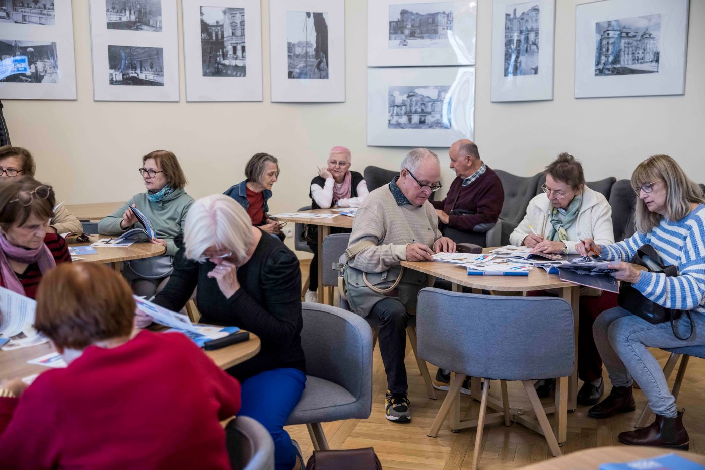 Uczestniczący w spotkaniu słuchacze Instytutu Trzeciego Wieku dostali do wykonania zadanie – wypełnienie przygotowanych kart pracy, z wykorzystaniem informacji pozyskanych na wystawie i podczas prelekcji.