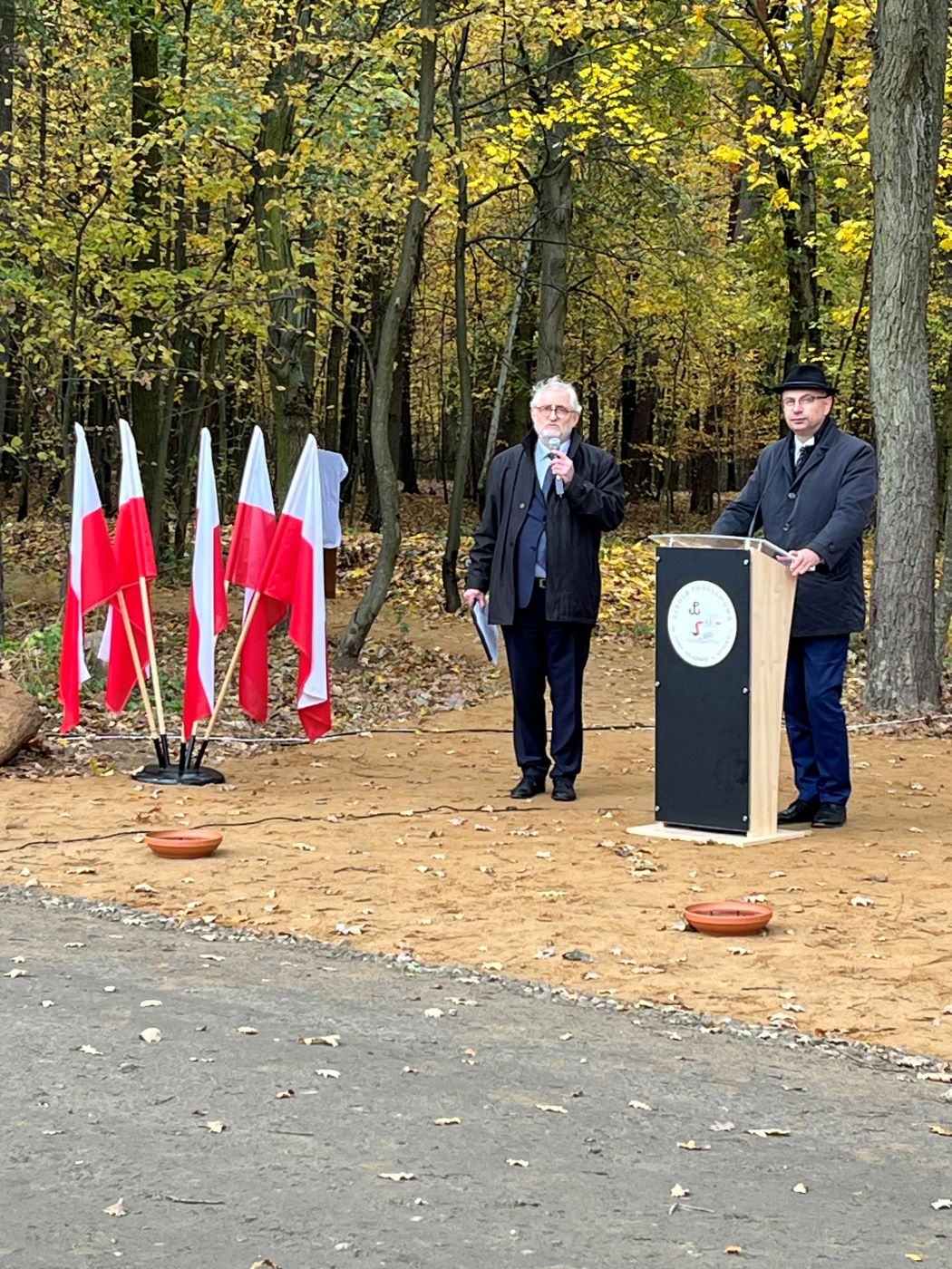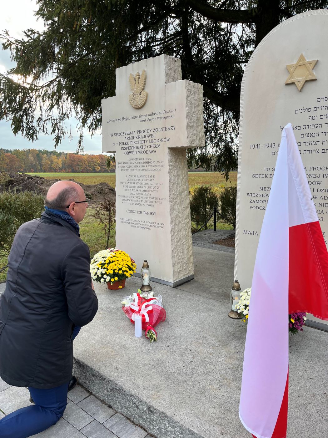 Uroczystość odsłonięcia pomników upamiętniających zamordowanych żydowskich więźniów niemieckiego obozu pracy w Adampolu – 30 października 2024. Na zdj. zastępca prezesa IPN dr Mateusz Szpytma. Fot. Jacek Romanek (OBUWiM Lublin) -