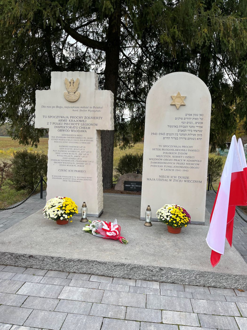 Uroczystość odsłonięcia pomników upamiętniających zamordowanych żydowskich więźniów niemieckiego obozu pracy w Adampolu – 30 października 2024. Fot. Jacek Romanek (OBUWiM Lublin) -