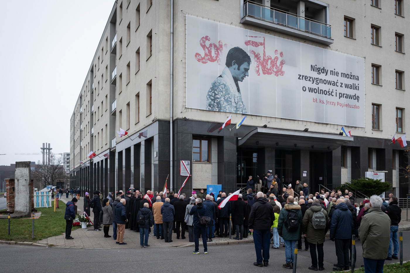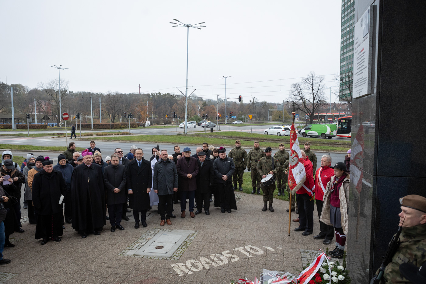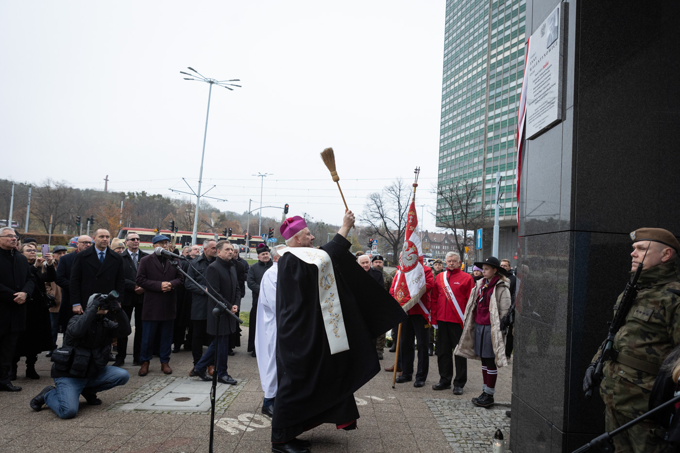 Kulminacyjnym momentem uroczystości było odsłonięcie tablicy pamiątkowej, którego dokonali: prezes Instytutu Pamięci Narodowej dr Karol Nawrocki, przewodniczący Komisji Krajowej NSZZ „Solidarność” Piotra Duda oraz Janusz Walentynowicz. Następnie ksiądz biskup Wiesław Szlachetka poświęcił nowo odsłoniętą tablicę, a zgromadzeni goście złożyli kwiaty pod upamiętnieniem.
