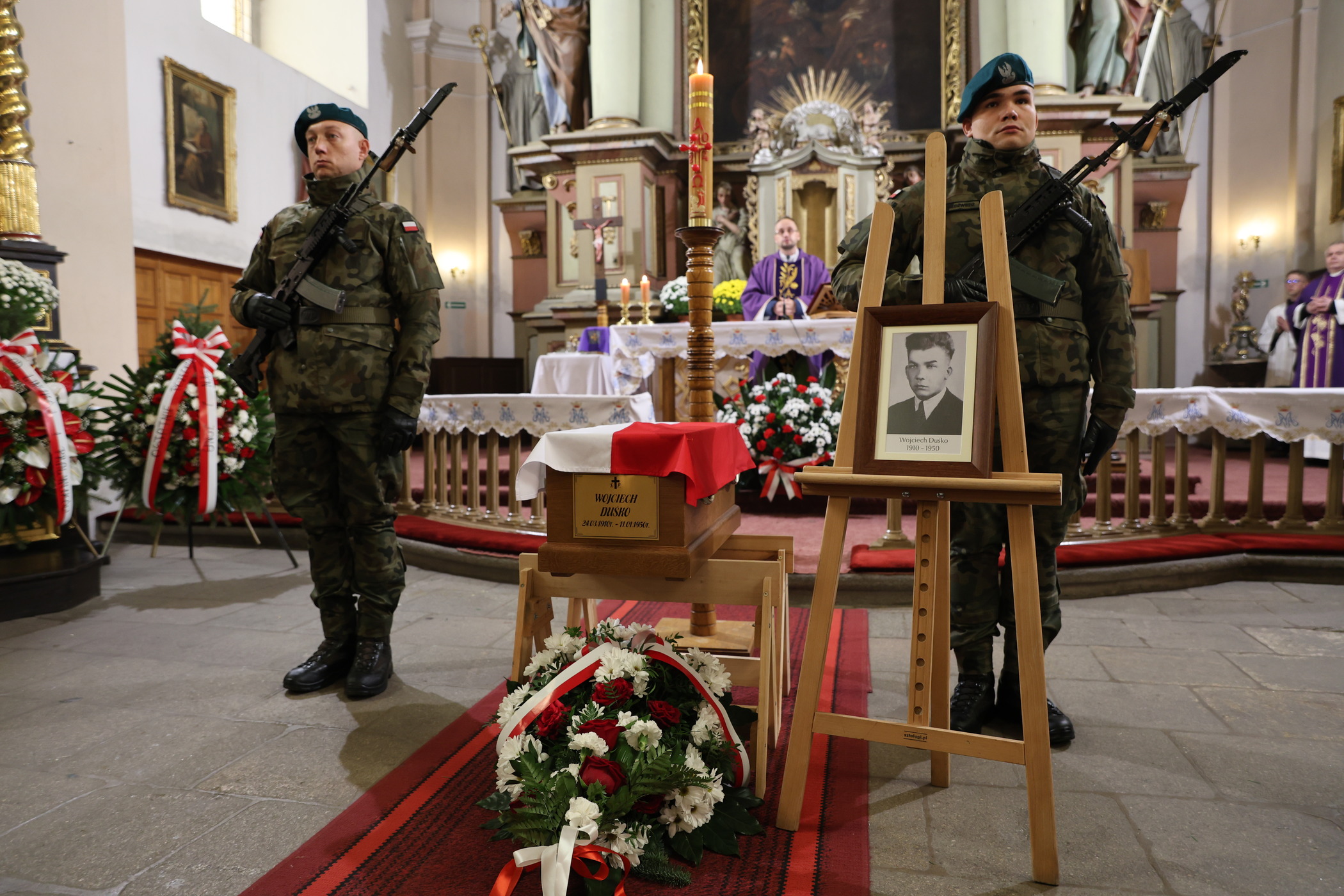 – Przez kilkadziesiąt lat rodzina pozbawiona była możliwości uzyskania informacji, gdzie znajdują się szczątki śp. Wojciecha Duśko. To IPN w maju 2022 roku odnalazł szczątki, które zostały przebadane i zidentyfikowane genetycznie. 1 grudnia 2023 roku w Belwederze w Warszawie ogłosiliśmy wszystkim Polakom, że wśród 17 odnalezionych i zidentyfikowanych ofiar są szczątki śp. Wojciecha Duśko. Dzisiaj ta długa droga kończy się w taki właśnie symboliczny sposób, piękną podniosłą uroczystością pogrzebową