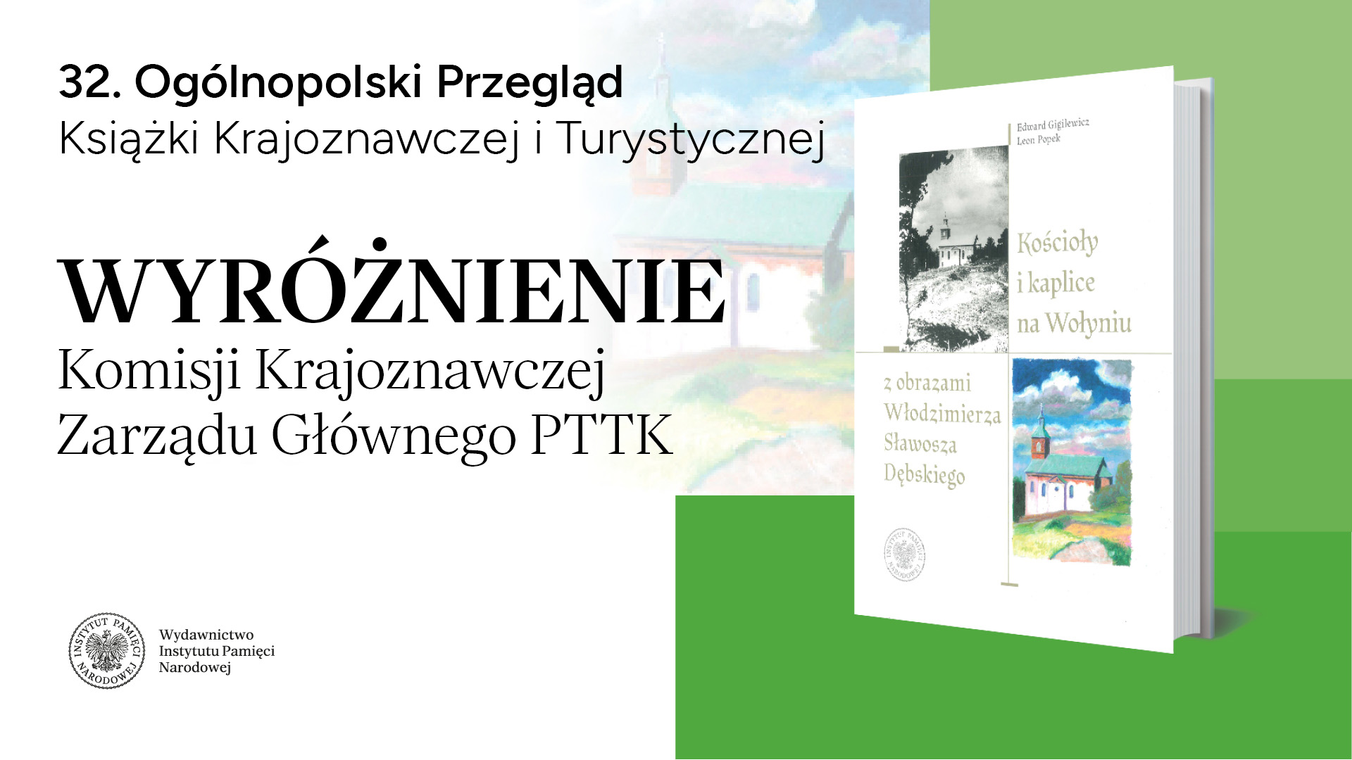 Z przyjemnością informujemy, że w 32. Ogólnopolskim Przeglądzie Książki Krajoznawczej i Turystycznej Komisja Krajoznawcza Zarządu Głównego PTTK przyznała wyróżnienie publikacji autorstwa Edwarda Gigilewicza i Leona Popka Kościoły i kaplice na Wołyniu z obrazami Włodzimierza Sławosza Dębskiego.