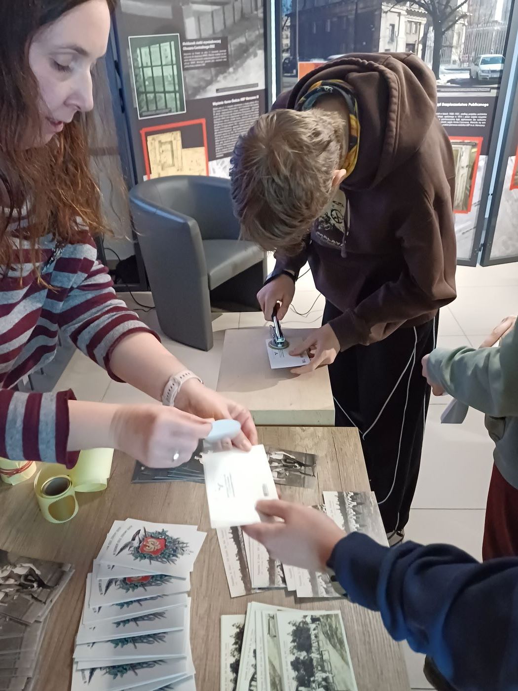 Następnie goszczący na wernisażu uczniowie Zespołu Szkół nr 40 im. Stefana Starzyńskiego wzięli udział w przygotowanej przez Rafała Borkowskiego (OBBH w Warszawie) lekcji pt. Historia listu. Od czasów najdawniejszych do współczesności.