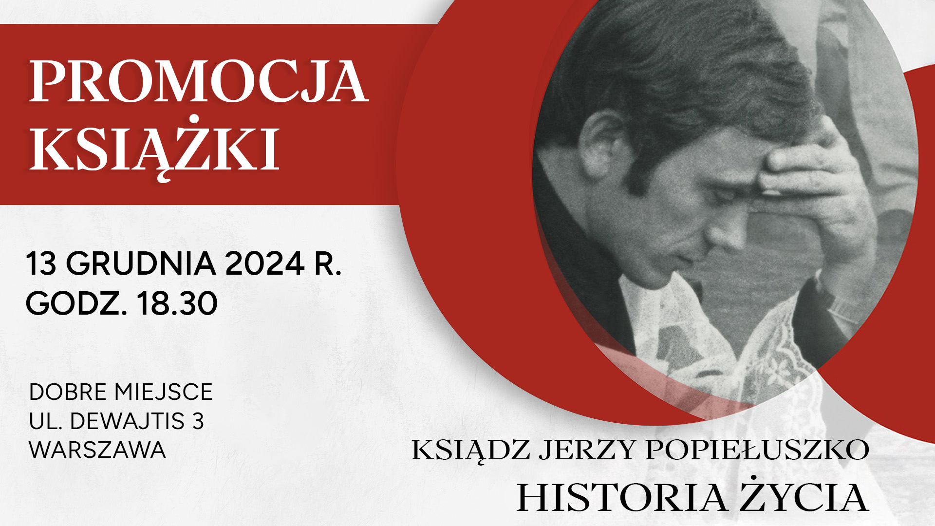 Spotkanie z Jakubem Gołębiewskim, autorem albumu „Ksiądz Jerzy Popiełuszko. Historia życia”, odbyło się 13 grudnia 2024 roku w Warszawie (Dobre Miejsce, ul. Dewajtis 3).