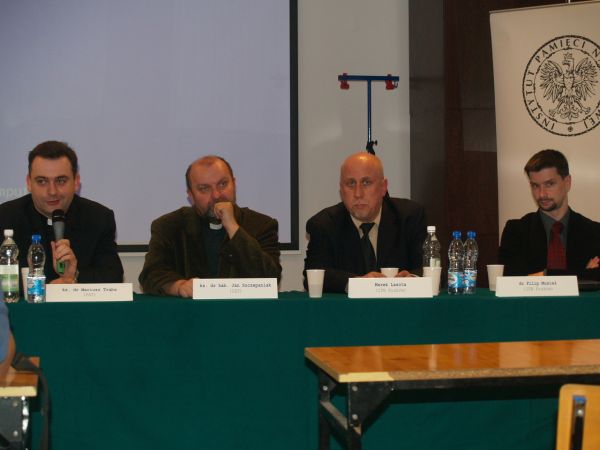 W spotkaniu wzięli udział Marek Lasota (OIPN Kraków), dr Filip Musiał (OIPN Kraków), ks. dr hab. Jan Szczepaniak (PAT) oraz ks. dr Mariusz Trąba (PAT). Moderatorem spotkania był Andrzej Paweł Bieś SJ.