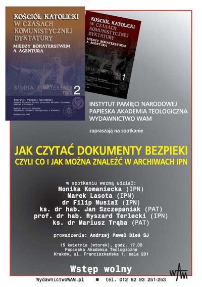W dniu 15 kwietnia 2008 r. na Papieskiej Akademii Teologicznej w Krakowie, przy ul. Franciszkańskiej 1, odbyła się promocja książki „Kościół katolicki w czasach komunistycznej dyktatury. Między bohaterstwem a agenturą. Studia i materiały”, t. 2.
