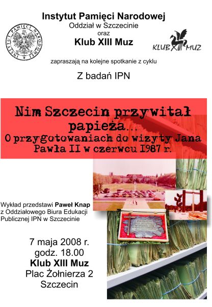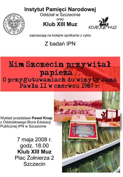 Wykład Pawła Knapa „Nim Szczecin przywitał papieża… O przygotowaniach do wizyty Jana Pawła II w czerwcu 1987 r.” – Szczecin, 7 maja 2008 r.