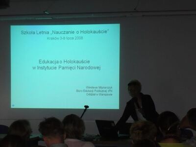 W dniach 3–8 lipca 2008 roku w Krakowie w Instytucie Europeistyki Uniwersytetu Jagiellońskiego przy ul. Jodłowej 13 odbyła się trzecia edycja Szkoły Letniej „Nauczanie o Holokauście”. Jednym z uczestników szkoły była Wiesława Młynarczyk, pracownik Instytutu Pamięci Narodowej (Referat Wystaw, Wydawnictw i Edukacji Historycznej OBEP IPN w Warszawie), która zaprezentowała działalność i ofertę edukacyjną Instytutu Pamięci Narodowej w zakresie Holokaustu i powojennej historii Żydów. Wymieniła i omówiła wybrane konferencje, seminaria, warsztaty edukacyjne, wystawy, a także publikacje naukowe i pakiety edukacyjne, jakie powstały na ten temat w IPN od początku jego istnienia.